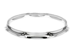 Obręcze do tomów, Wykonane są najczęściej ze stali. Można je zamiennie stosować jako górne od strony uderzanej jak i dolne od strony rezonansowej bębna. Różnią się miedzy sobą ilością otworów. Im większa średnica bębna tym większa ilość otworów na śruby. Stalowe obręcze są najbardziej popularne i występują w większości seryjnie sprzedawanych bębnów. Są też łatwo dostępne i zamienne z produktami innych marek