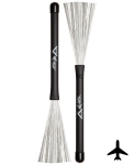 Stalowe miotełki do jedne z najczęściej występujących i najbardziej popularnych. Mogą być wykonane z cienkich pręcików i jest ich wtedy dużo oraz są najszersze. Kiedy druciki są grubsze zazwyczaj występuje ich mniej i są węższe. Posiadają one rękojeść wykonaną z wielu typów materiałów. Najczęściej występuje guma, tworzywo lub drewno. Drewniana rączka umożliwia też granie cross-stickiem. Druciki stalowe dają najbardziej klasyczny dźwięk szurania o szorstki naciąg. Miotełki te występują w wersji stałej oraz chowanej. Wersja chowana zazwyczaj umożliwia rozczapierzenie na kilka poziomów. Należy przy tym pamiętać aby nie kręcić dźwignią chowającą, gdyż można okręcić mocowanie pręcików
