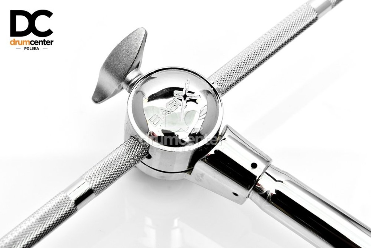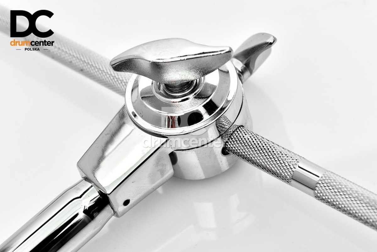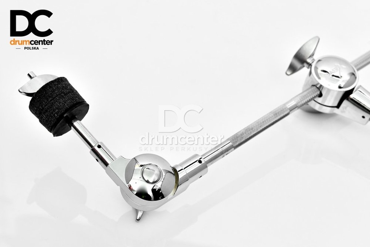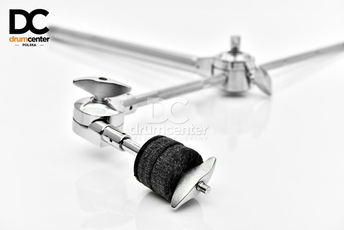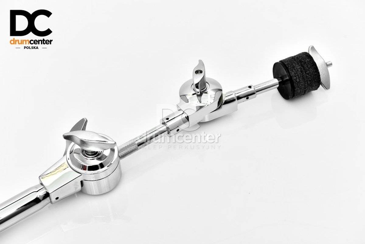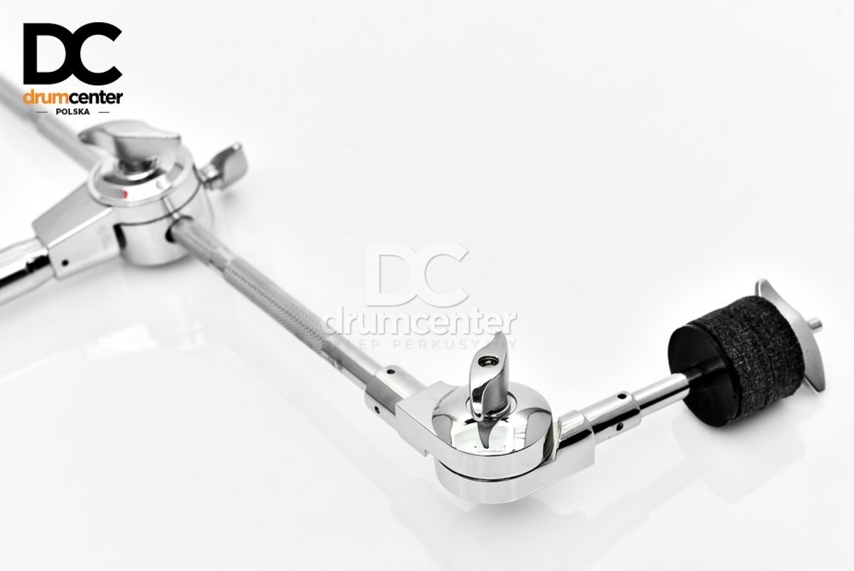 Ramię do talerza z wysięgnikiem o długości roboczej 45 cm. Bardzo masywne i stabilne. Jest w stanie utrzymać nawet ciężkie talerze typu heavy ride. Takie ramię można z powodzeniem zastosować także w ramach perkusyjnych.