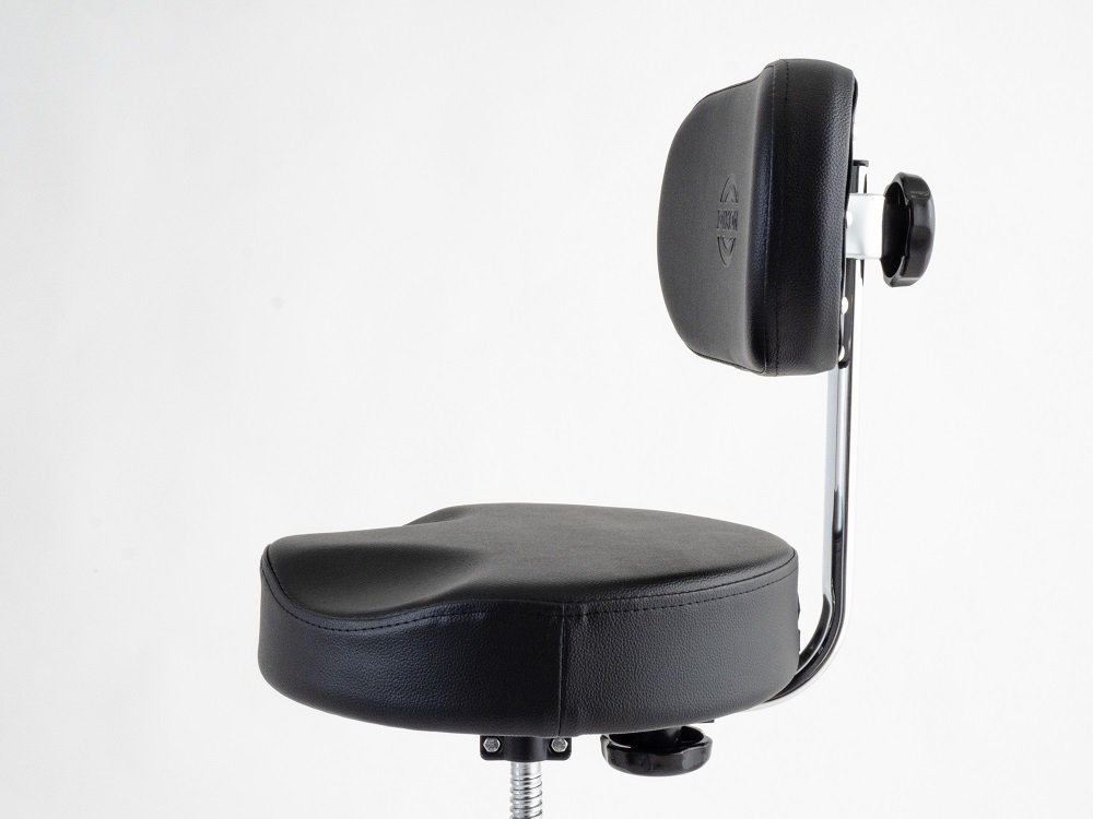 Dixon PSN-15MB - stołek perkusyjny z oparciem. Stołek wyposażony w okrągłe siedzisko oraz płynną regulację wysokości na gwincie. Okrągłe siedzisko zostało wyprofilowane tak by jego krawędź nie uciskała na uda.