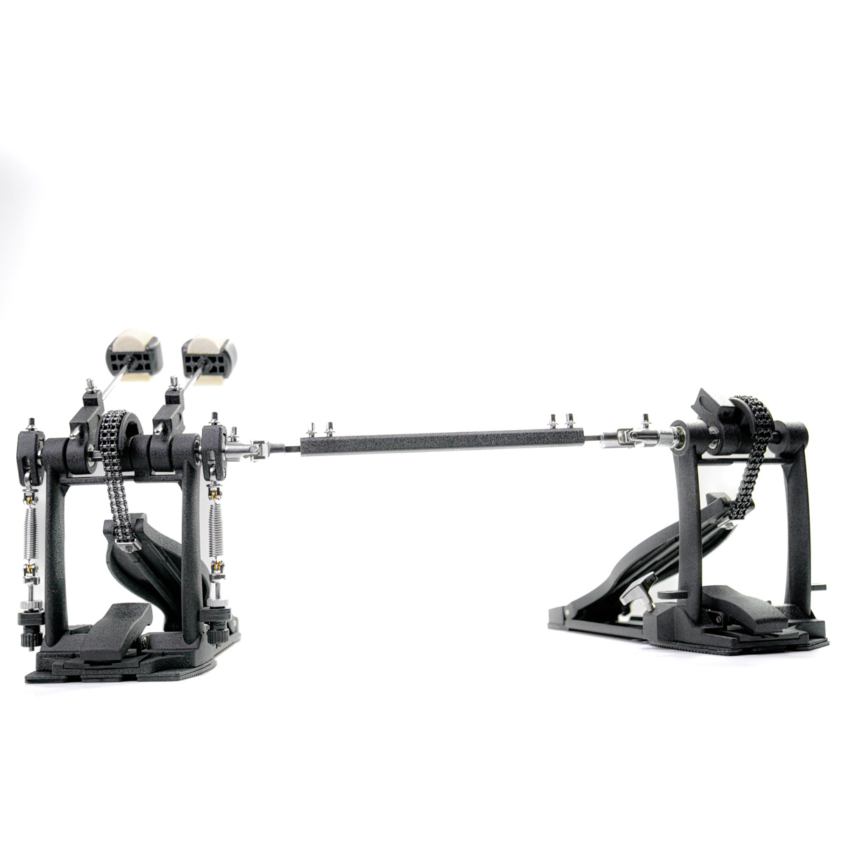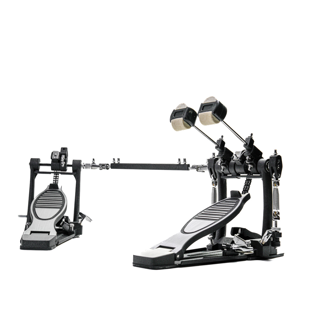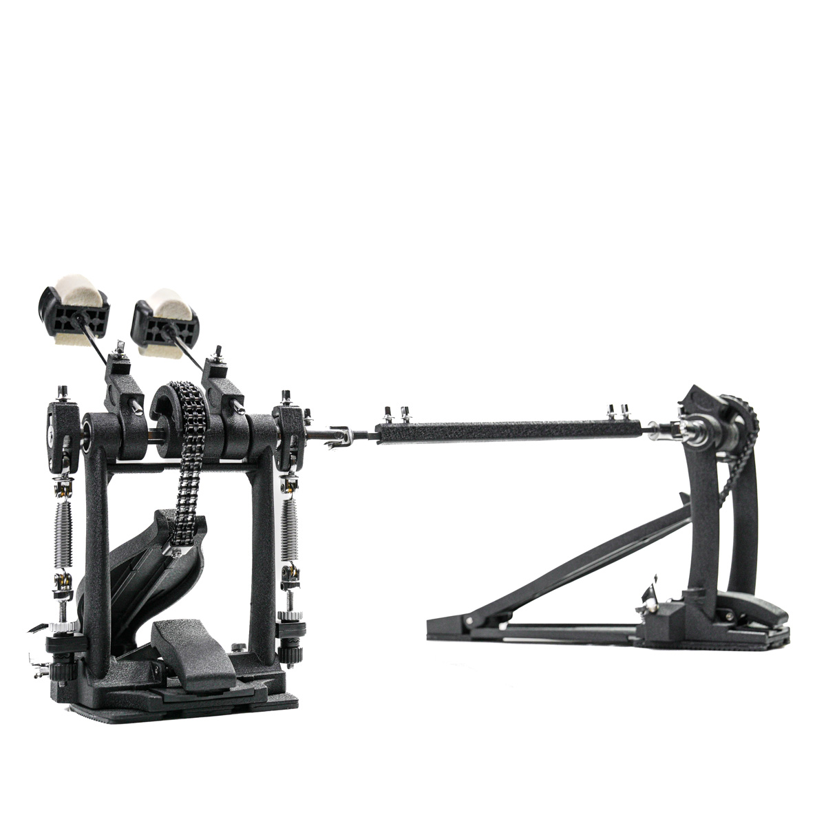 Podwójna stopa, która swoimi możliwościami znacząco przewyższa konkurencyjne modele w podobnej jak i wyższej półce cenowej. Nie ma znaczenia czy dopiero zaczynasz czy już trochę masz opanowaną podwójną stopę. Chodzi szybko i pewnie. Czterostronny bijak robi robotę. Filcowy daje ciekawy punktowy atak z tzw. "bułą" a bijaki wykonane z tworzywa dają niesamowity punkt. Można rzecz, że bijaki niemal identyczne jak w wysokich seriach Pearl Eliminator.