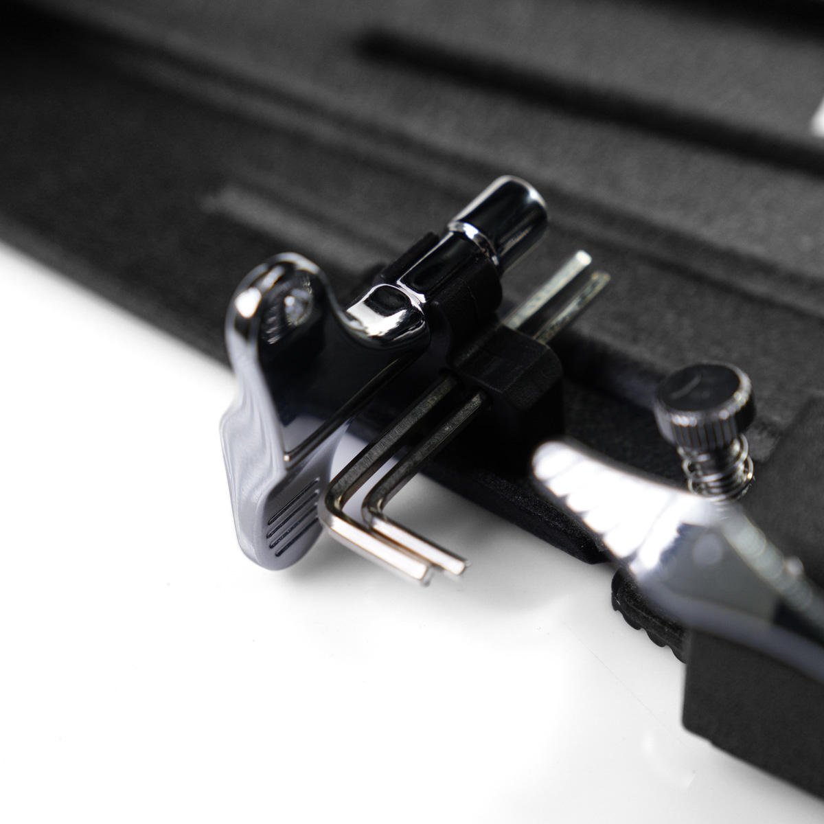 Ciekawym rozwiązaniem jest podwójne łożyskowanie sprężyny z góry i z dołu. Dzięki temu atak jak i powracanie bijaka jest płynne i równomiernie, a zużycie elementów stopy mniejsze. Łatwy do wyregulowania kąt nachylenia bijaków, niezależnie prawego i lewego. Zaciskanie klamry na obręczy odbywa się poprzez specjalną dźwignię zakończoną motylkiem. Nie trzeba w związku z tym nurkować pod footboard aby dokręcić stopę.