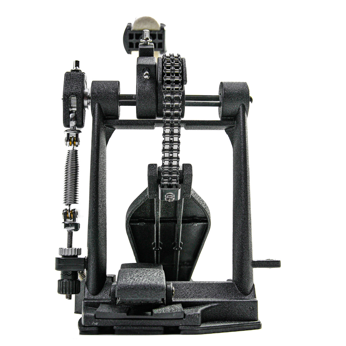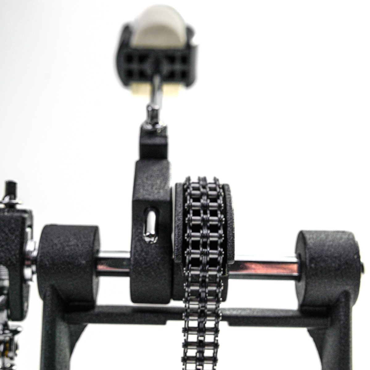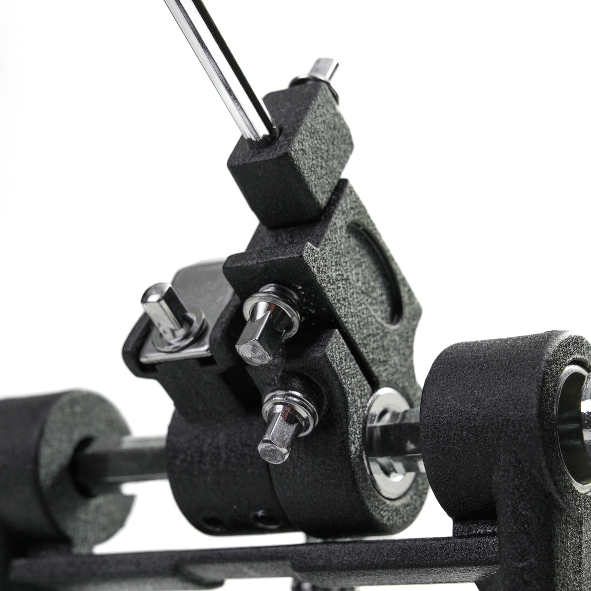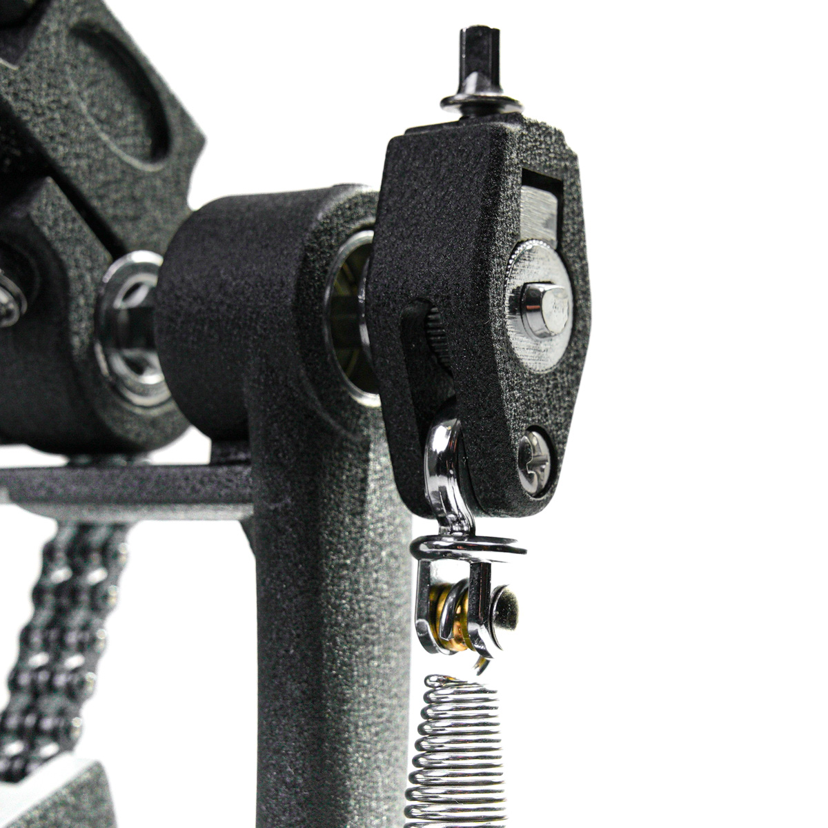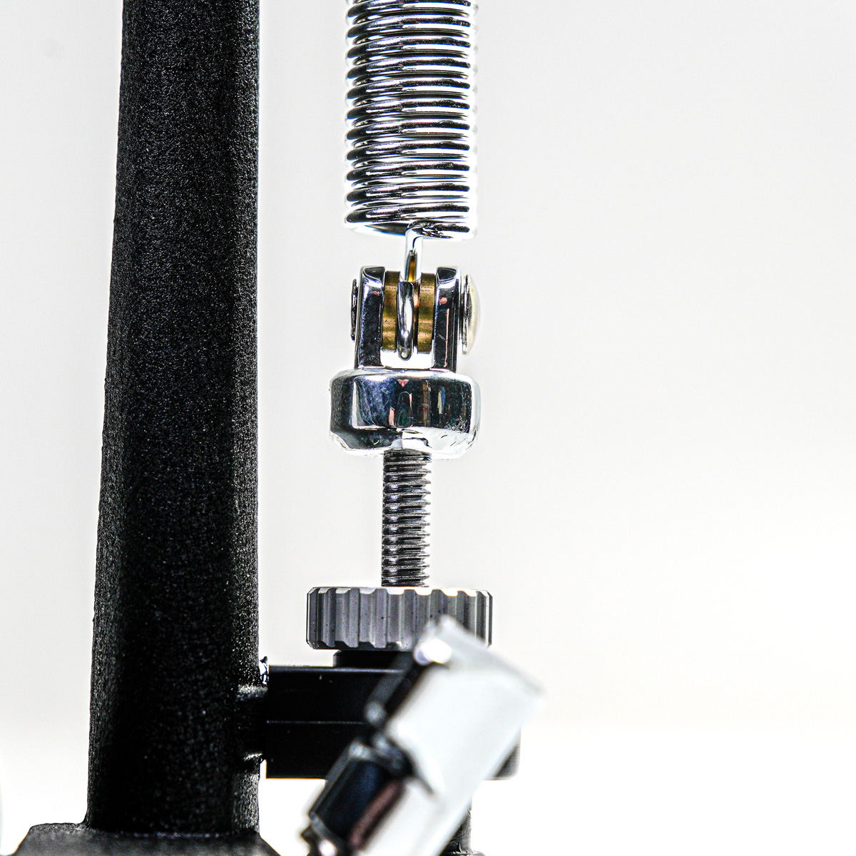 Ciekawym rozwiązaniem jest podwójne łożyskowanie sprężyny z góry i z dołu. Dzięki temu atak jak i powracanie bijaka jest płynne i równomiernie, a zużycie elementów stopy mniejsze. Łatwy do wyregulowania kąt nachylenia bijaka. Zaciskanie klamry na obręczy odbywa się poprzez specjalną dźwignię zakończoną motylkiem. Nie trzeba w związku z tym nurkować pod footboard aby dokręcić stopę.