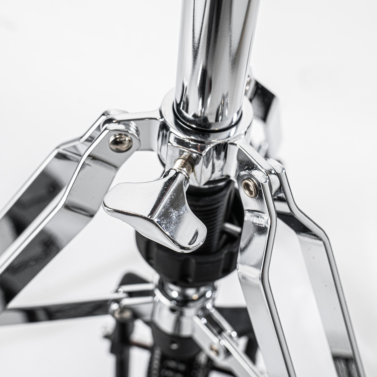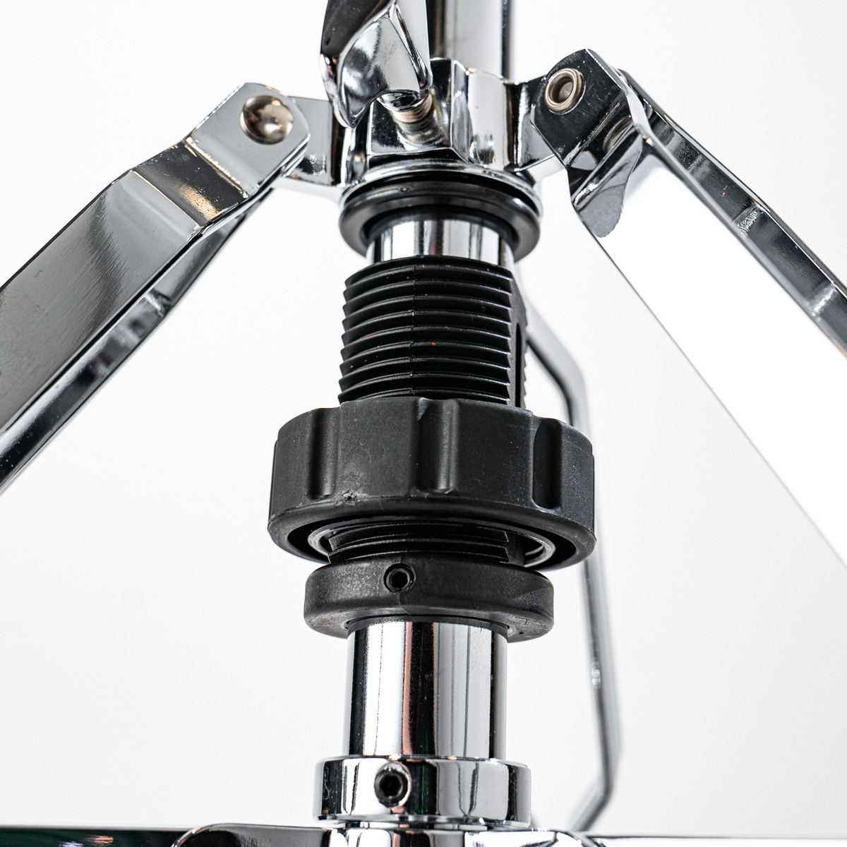 Masywna konstrukcja wsparta na trzech obrotowych nogach w połączeniu ze składaną platformą zapewnia niesamowitą stabilność. Wykręcane kolce sprawiają, że statyw zakotwiczony w dywanie nie przesunie się nawet podczas bardzo ekspresyjnej gry. Obracane nogi umożliwiają łatwe ustawienie w przypadku podwójnej stopy.