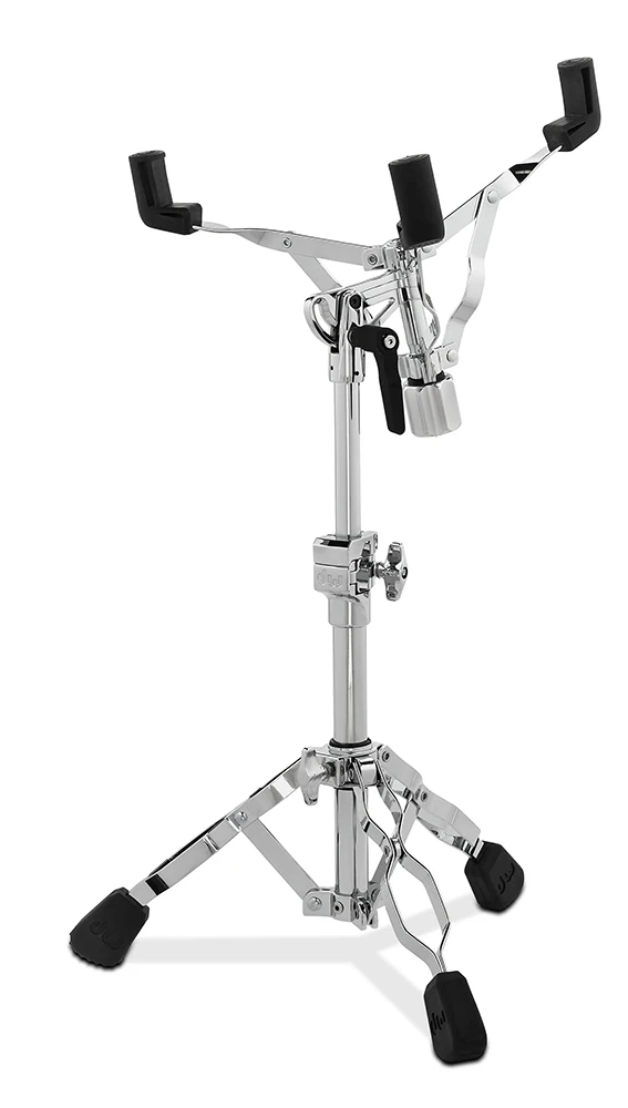 Średniej wagi, podwójnie usztywniony statyw pod werbel, który łączy stabilność ze swobodą ustawień. Model DWCP3300A oferuje płynną regulację kąta kosza (Glide/Toothless Tilter) oraz końcówki kosza Reso Pocket – werbel siedzi pewnie, a obręcz nie jest tłumiona. Mniejszy „footprint” ułatwia ustawienie między dwoma pedałami, a memory locki na rurach pozwalają wracać do identycznej wysokości po każdej próbie.