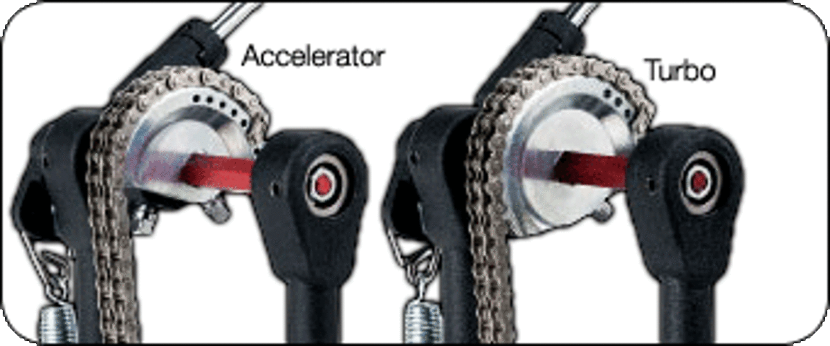 Napęd Accelerator ™ (AD4) to krótsza krzywka koła zębatego. Powoduje ona skrócenie długości drogi łańcucha i w końcowej fazie przyspieszenie bijaka.