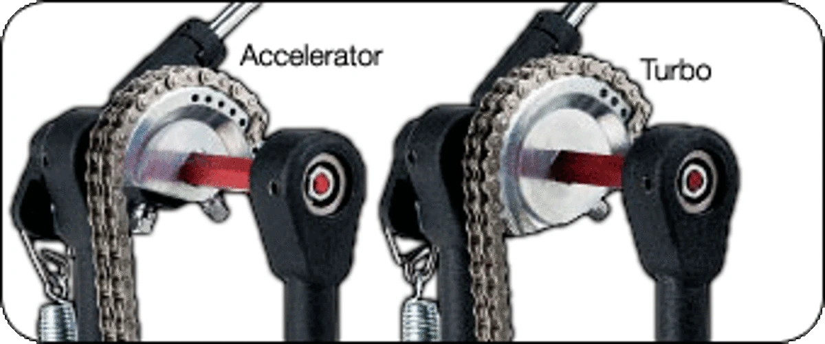 Nowy Tri-Pivot Toe Clamp wykorzystuje trzy niezależne, obrotowe podkładki gumowe 360°, które chwytają z góry i z dołu niemal każdy rodzaj i grubość obręczy bębna basowego – bez poślizgu. W połączeniu z teksturalną gumą na płycie bazowej otrzymujesz wyjątkowo mocne i pewne mocowanie pedału do centrali. Dual-Bearing Spring Rocker (wahacz sprężyny na łożyskach) wygładza pracę sprężyny i przyspiesza powrót beatera, a Dual-Chain Turbo Drive System utrzymuje liniową relację między zębatką a footboardem, zapewniając solidny, spójny i przewidywalny feel w całym zakresie ruchu.
