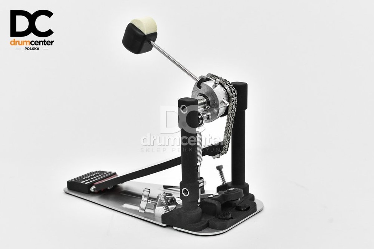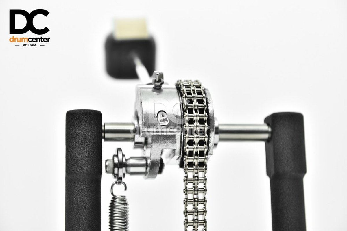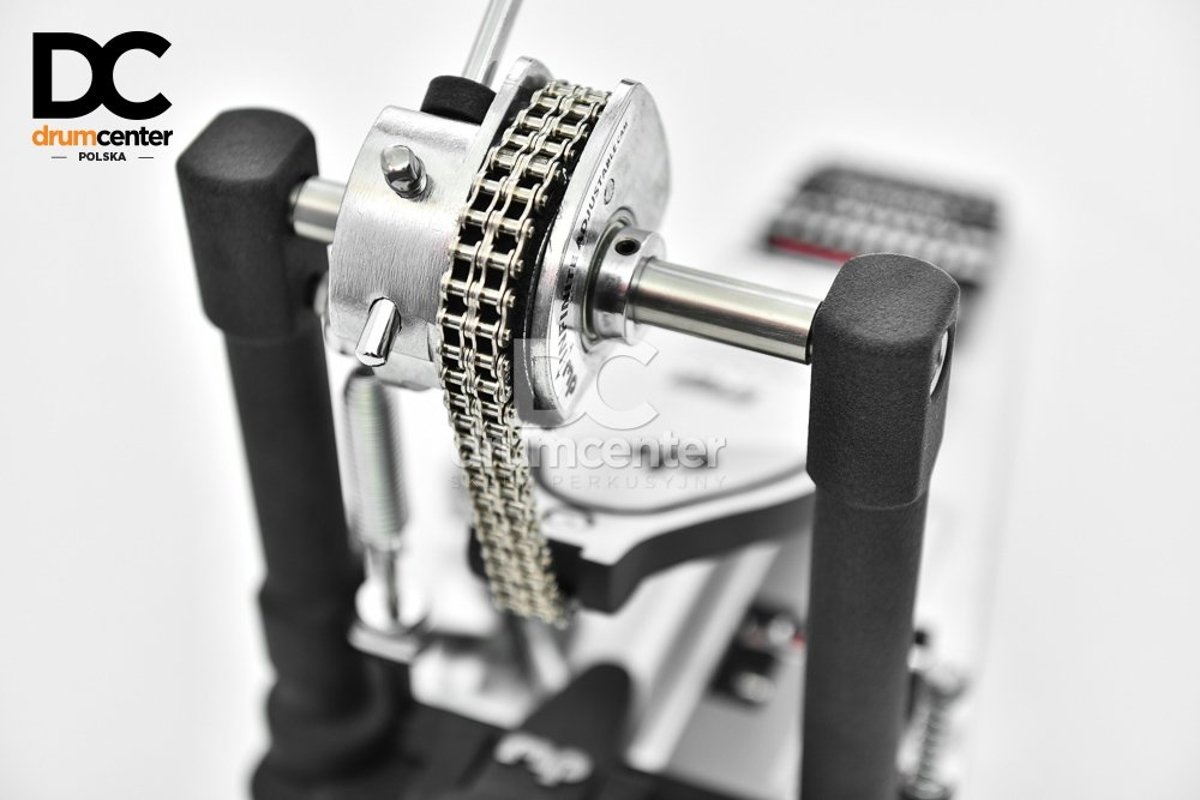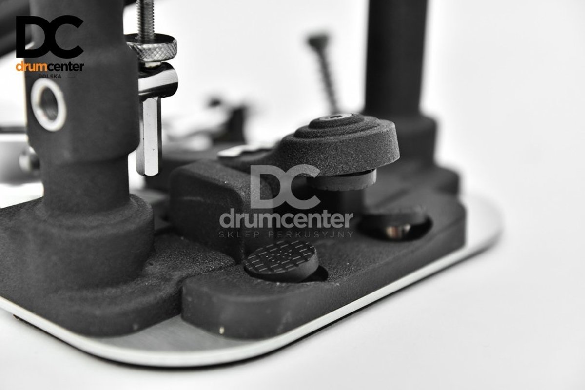 DW 9000 to najwyższy model wśród pedałów marki DW. Posiada bardzo dużą ilość regulacji, m. in. regulację krzywki, dzięki czemu możemy płynnie ustawić charakterystykę pracy stopy, regulację kąta nachylenia bijaka, możliwość zmiany napędu, do wyboru pasek i łańcuch (oba w zestawie). Stopy z serii 9000 to klasa sama w sobie, każdy znajdzie w nich coś dla siebie, jest to w pełni zawodowy sprzęt.