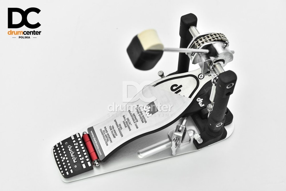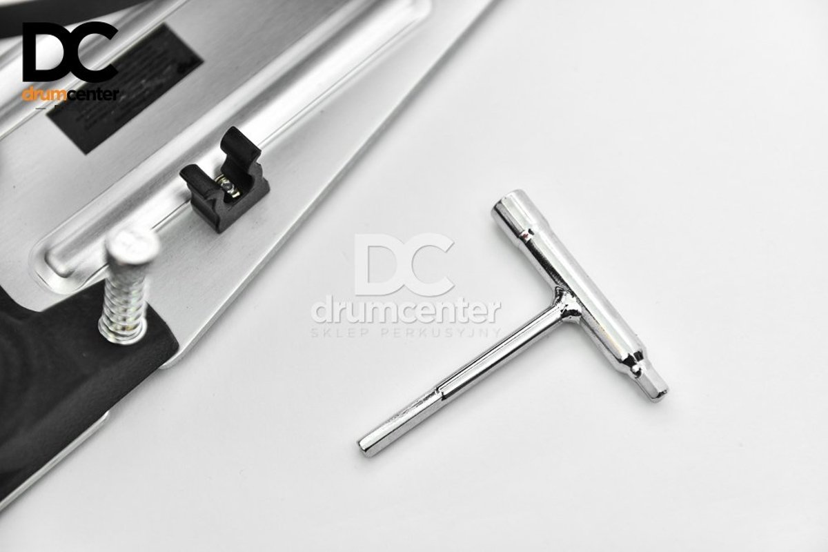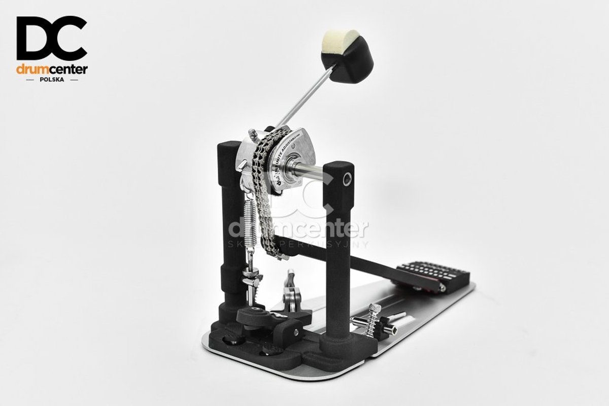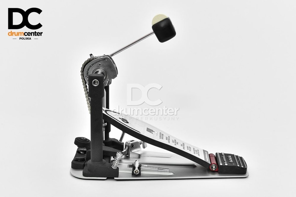 DW 9000 to najwyższy model wśród pedałów marki DW. Posiada bardzo dużą ilość regulacji, m. in. regulację krzywki, dzięki czemu możemy płynnie ustawić charakterystykę pracy stopy, regulację kąta nachylenia bijaka, możliwość zmiany napędu, do wyboru pasek i łańcuch (oba w zestawie). Stopy z serii 9000 to klasa sama w sobie, każdy znajdzie w nich coś dla siebie, jest to w pełni zawodowy sprzęt.