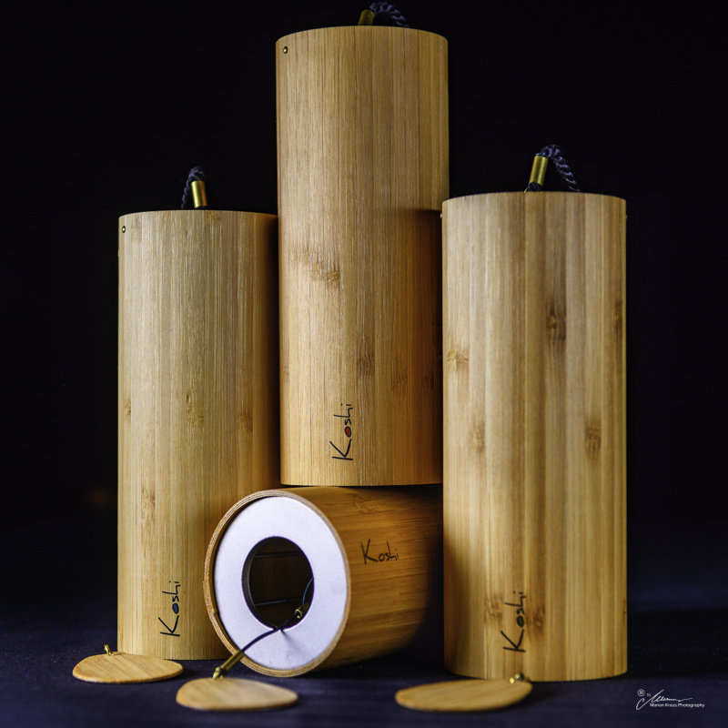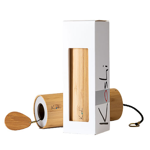 Koshi chimes - oryginalne dzwonki Koshi to prawdziwy instrument wykonany z wielką dbałością i odznaczający się wysoką jakością dźwięku. Każdy instrument Koshi, wykonany ręcznie u podnóża Pirenejów, jest wynikiem niezwykle precyzyjnego kunsztu. Cztery warianty brzmieniowe odpowiadają poszczególnym siłom natury, takim jak Ziemia, Powietrze, Ogień i Woda. Każdy z nich ma swój unikalny zestaw dźwięków i może współgrać z innymi dzwonkami Koshi.