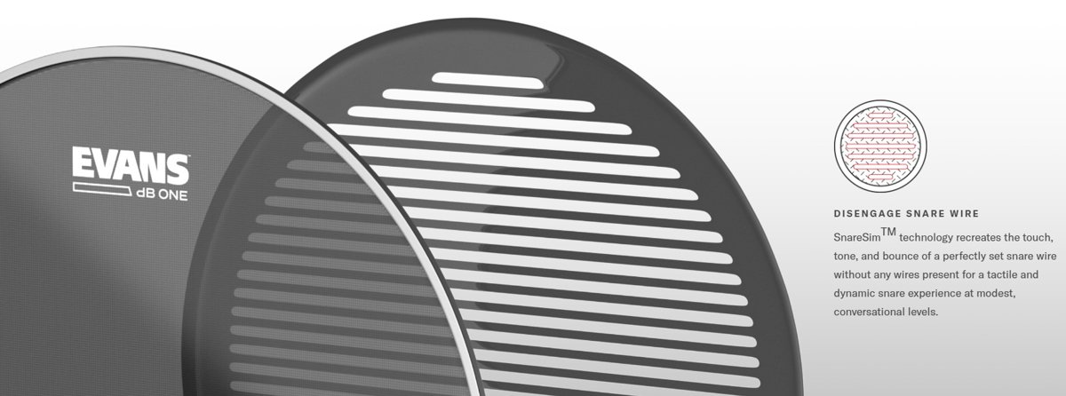 Wykorzystując unikalną, dwuwarstwową konstrukcję, która łączy górną warstwę siatki Evans ShockWeave Mesh z całkowicie nową technologią Snare Sim, naciąg werblowy dB One przenosi energię uderzenia na wibracje dźwiękowe, które naśladują brzmienie werbla, przy jednoczesnym zachowaniu bardzo niskiej głośności. Naciąg imituje charakterystyczne brzmienie sprężyny werblowej nawet gdy ta jest wyłączona. Poprzez jej włączenie uzyskuje się dodatkową ilość brzmienia werblowego i nieco większą głośność. Pozwala to na zwiększenie kontroli artykulacji podczas ćwiczeń.
