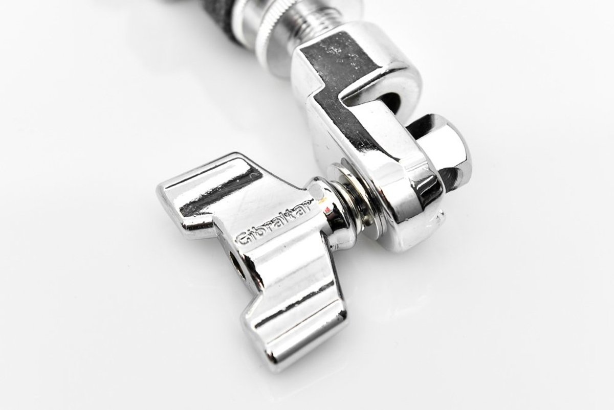 Uchwyt do hi-hatu firmy Gibraltar. Posiada wzmocniony mechanizm zaciskowy, dzięki czemu górny talerz nawet mimo mocnego nacisku nie zmienia swojej wysokości. Jest to już zawodowy mechanizm dający możliwość precyzyjnego ustawienia a także gwarancję stabilności.