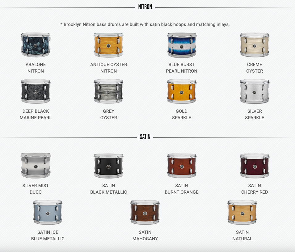 Gretsch Brooklyn USA - produkowany ręcznie w USA zestaw nawiązujący do najlepszych tradycji marki Gretsch. Korpusy sześciowarstwowe wykonane z klonu i topoli, nieco grubsze niż w USA Custom i jak przystało na Gretscha ścięte pod kątem 30 stopni. Ten typ krawędzi zapewnia otwarte, ale jednocześnie ciepłe brzmienie bębnów.