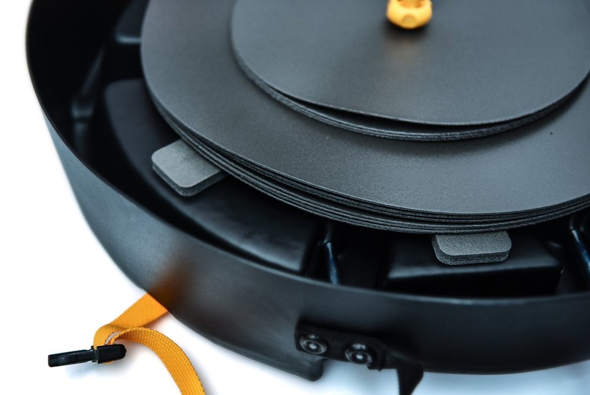 Hardcase HN12CYM to twardy case wykonany z tworzywa będący w stanie pomieścić 12 talerzy o maksymalnej średnicy 24". System klipsów "quick-lock" ułatwia szybkie zamykanie i otwieranie. Wysuwana rączka oraz bardzo wytrzymałe kółka ułatwiają transport. W środku znajduje się trzpień z zakrętką oraz liczne przekładki, które zapewniają brak kontaktu z sąsiadującymi talerzami. Twoje talerze są bezpieczne.