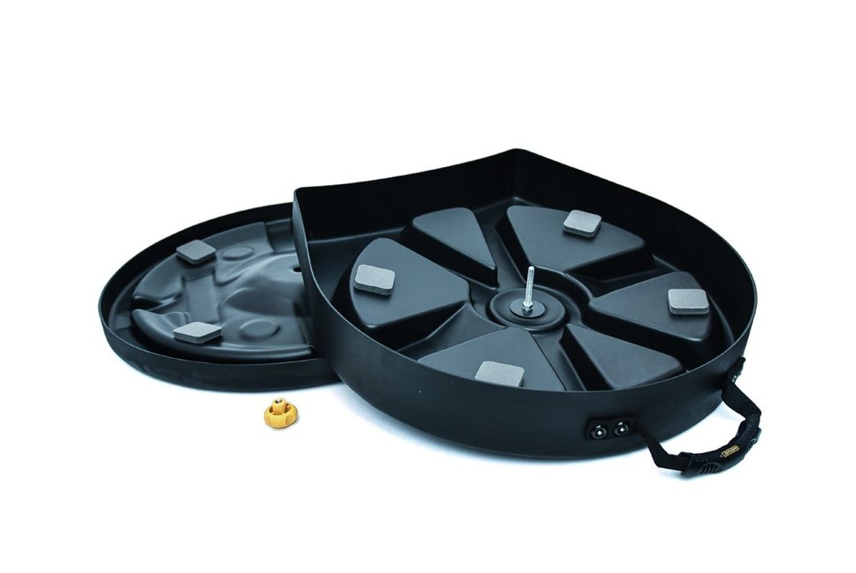 Case posiada bezpieczną rączkę do noszenia przymocowaną nitami do korpusu futerału. Otwieranie i zamykanie odbywa się poprzez odkręcenie odkręcenie wzmacnianej nakrętki i uchylenie wieka. Idealne do transportowania Twoich talerzy.