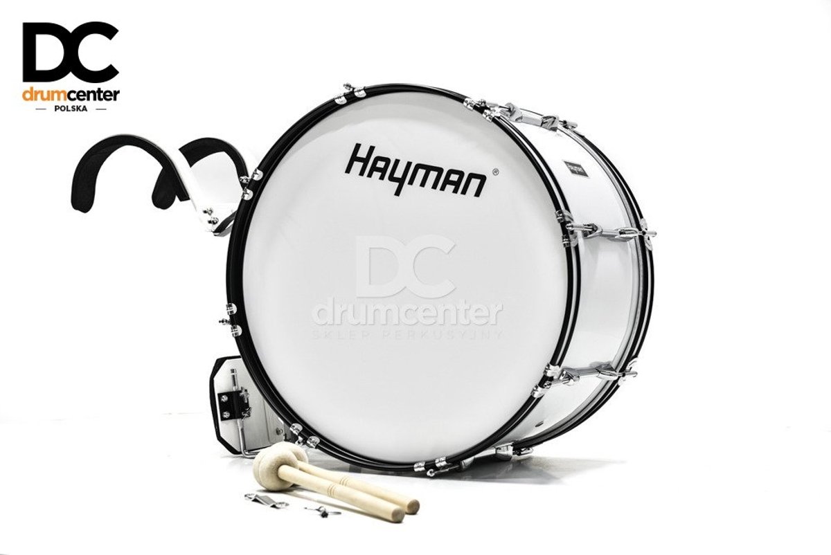 Zestaw marszowy Hayman bęben basowy + Regulowane Nosidło + Pałki filcowe