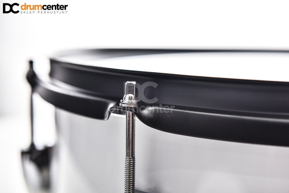 Obręcze górne i dolne werbla są metalowe i polakierowano je na kolor czarny.