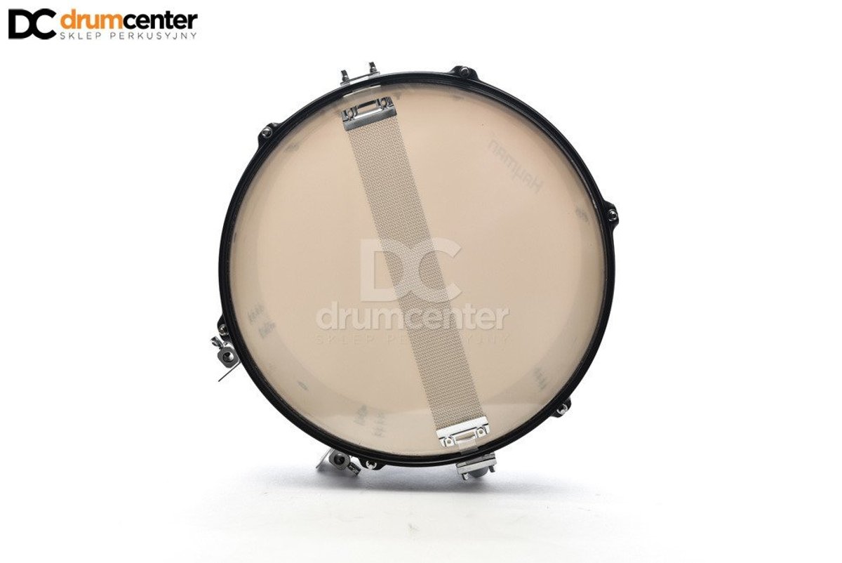Obręcze górne i dolne werbla są metalowe i polakierowano je na kolor czarny.