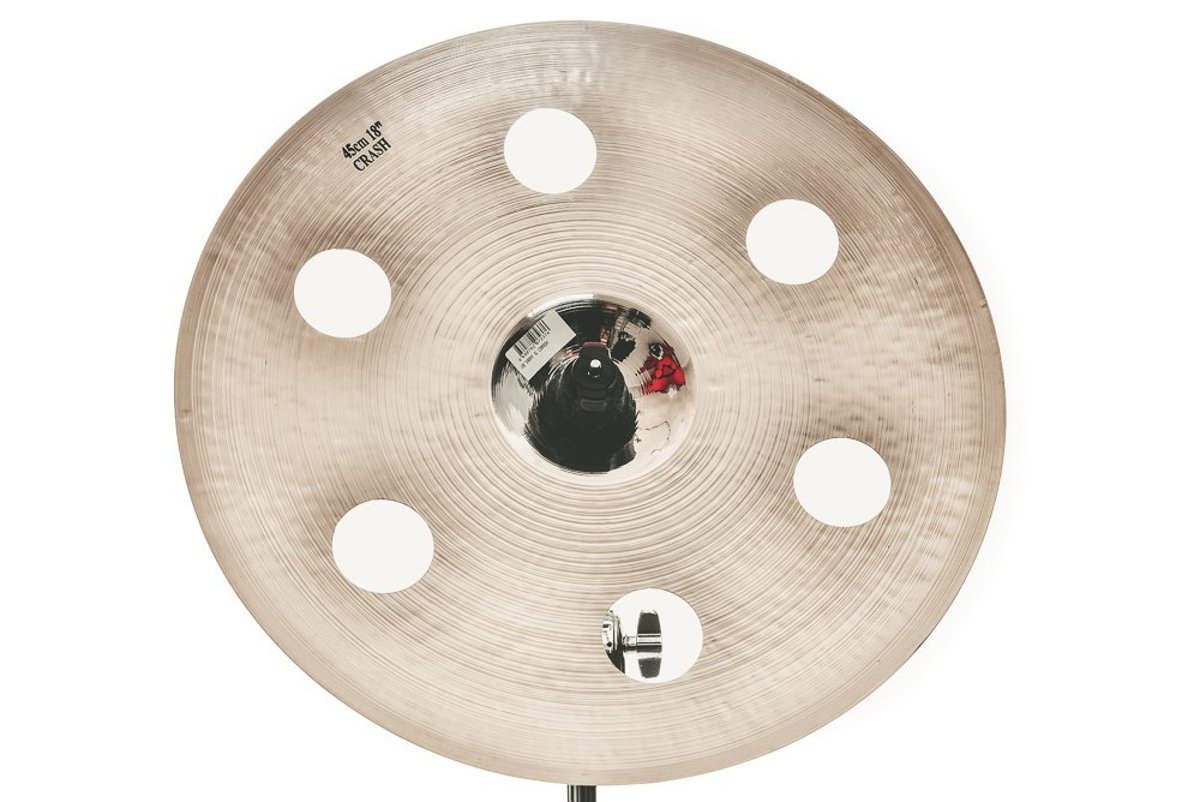 Dziurawy crash o szybkim ataku i gaśnięciu. Znakomity talerz efektowy z pogranicza brzmienia crasha i chiny. Brzmi niżej od swojego 16-calowego odpowiednika.
