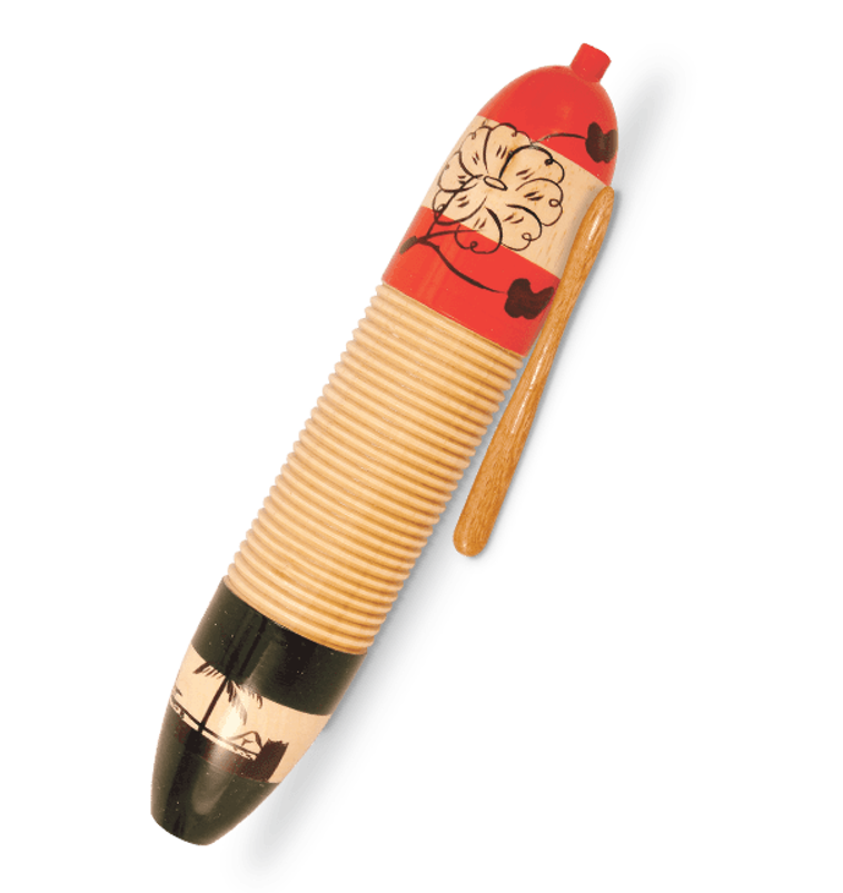 Cylindryczne guiro drewniane, przeznaczone dla początkujących i średniozaawansowanych muzyków. W komplecie drewniana "łopatka".