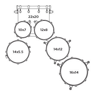 • BD: 22x20 <--Extra Deep Bass Drum (Virgin Bass Drum)