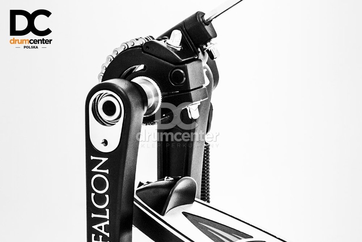 Charakterystyczną dla stopek serii Falcon jest również wąska rama całego mechanizmu, dzięki czemu dwa stojące obok siebie pedały zajmują zdecydowanie mniej miejsca. Kolejną ciekawostką jest możliwość wymiany ciężarków w bijakach, a tym samym regulacja nastawienia stopki (szybka, lub z większym ciosem)