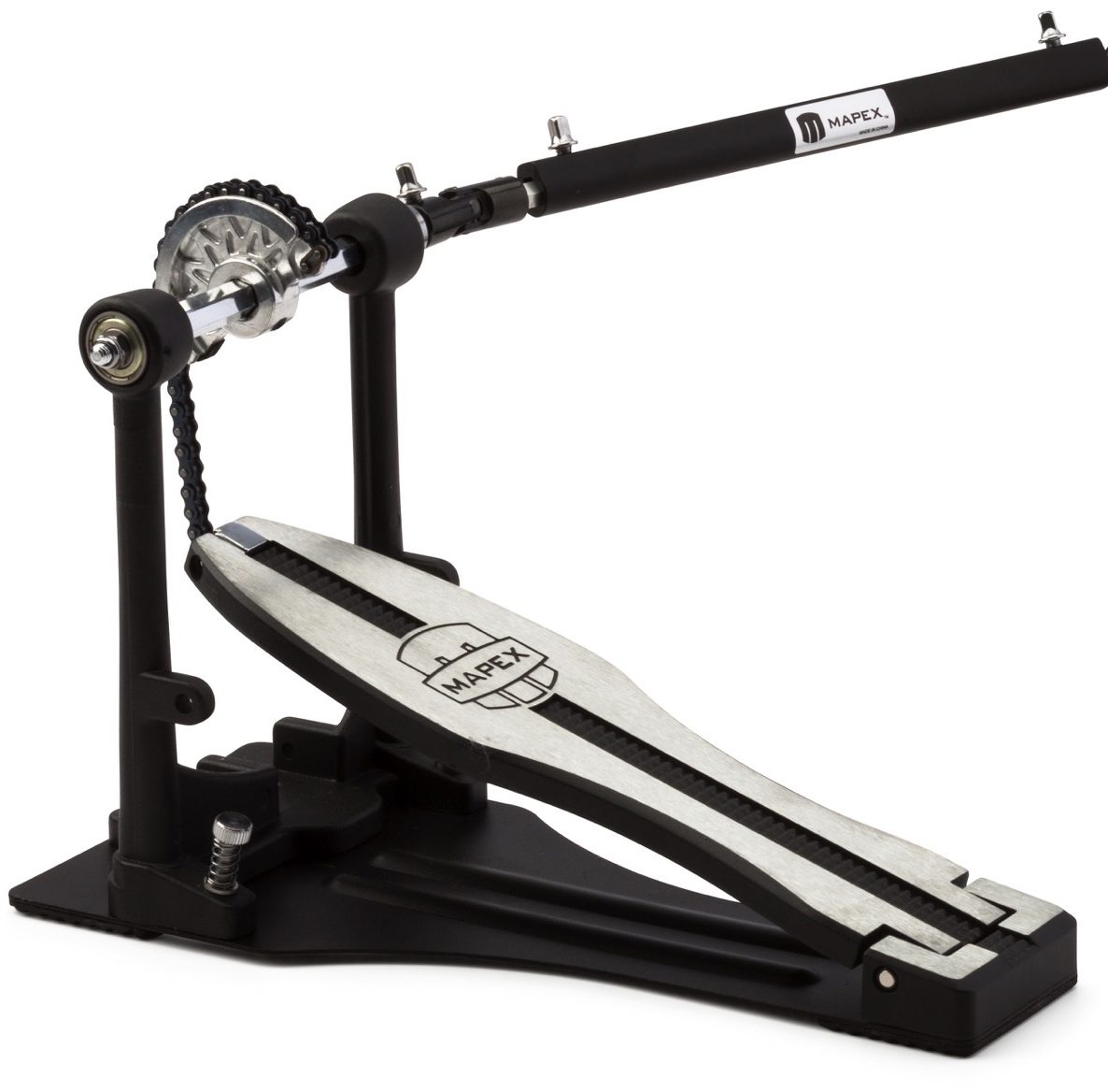 Mapex P400TW Storm to podstawowa stopa podwójna na platformie tego producenta. Cichy i lekki mechanizm na pojedynczym łańcuchu, regulacja kąta bijaków i napięcia sprężyn. Dobra propozycja dla średnio-zaawansowanych i początkujących perkusistów.