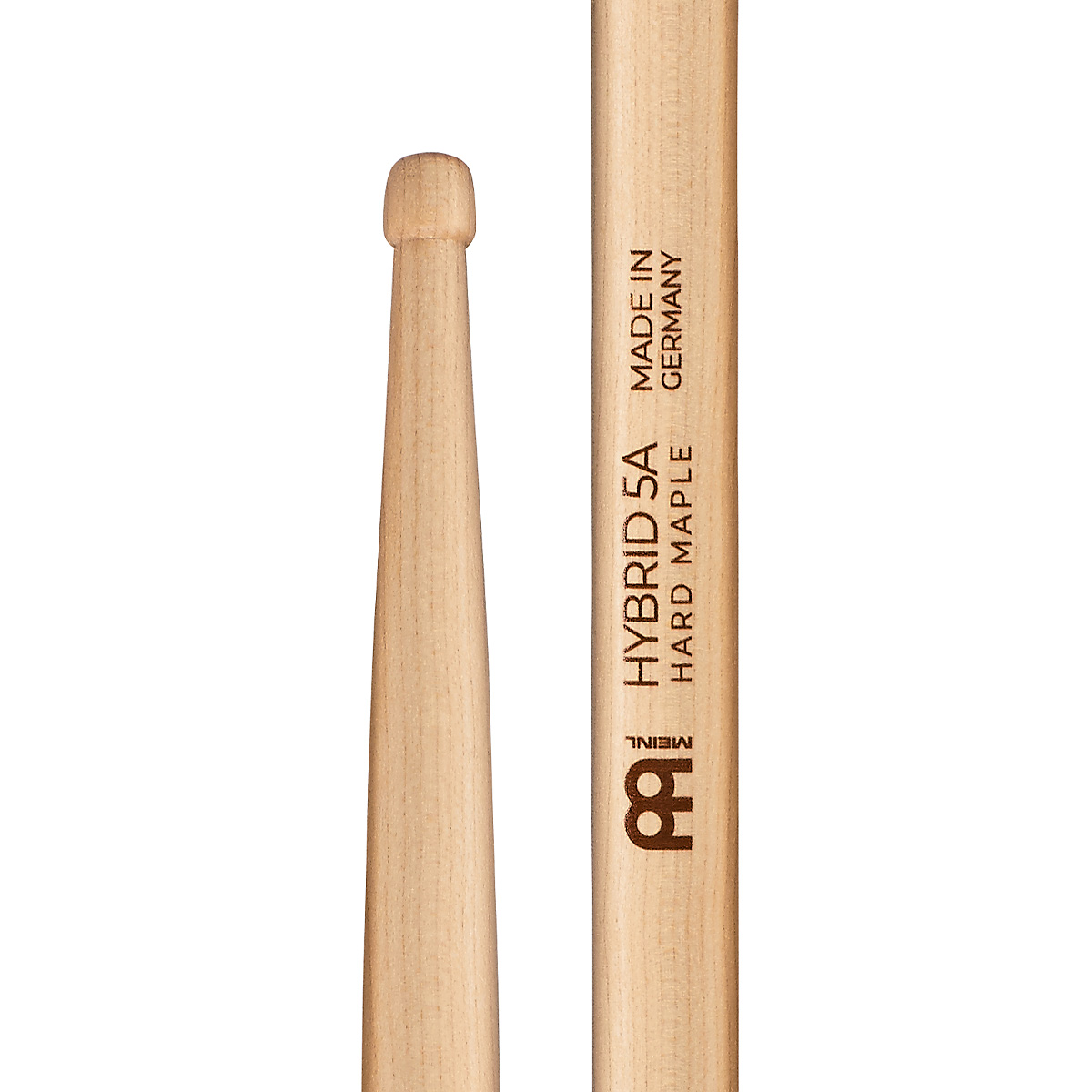 Meinl 5A Hybrid Maple - najbardziej popularny model pałek w wersji Hybrid wykonany z klonu. Znakomicie wyważone, zakończone drewnianą główką w kształcie zmodyfikowanej baryłki (Hybrid Tip). Idealny uniwersalny model przedłużony o 0.25" (7 mm dłuższe niż standardowy model 5A).
