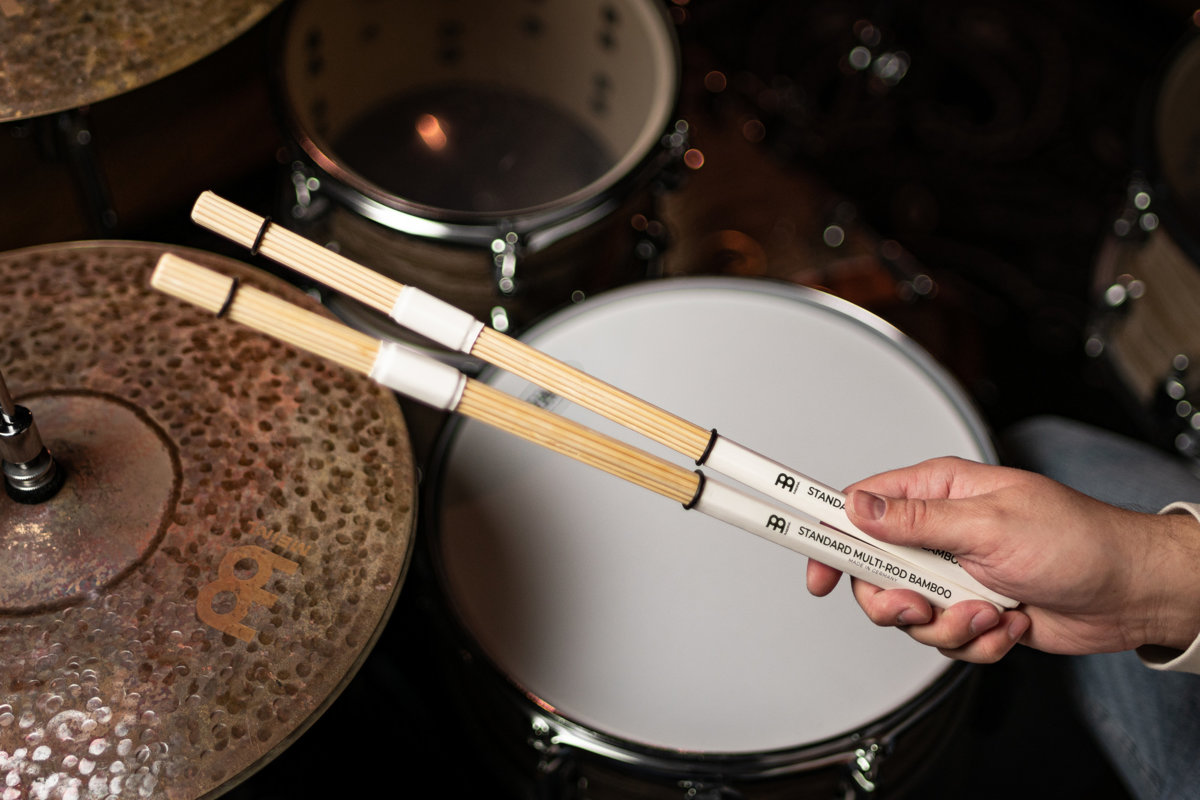 Meinl Bamboo Standard - rózgi wykonane z 19 pręcików bambusowych wzmocnionych owijką dla większej sztywności i żywotności. Ciche i delikatne brzmienie talerzy oraz tomów. Werbel odzywa się miękkim, ciepłym atakiem.