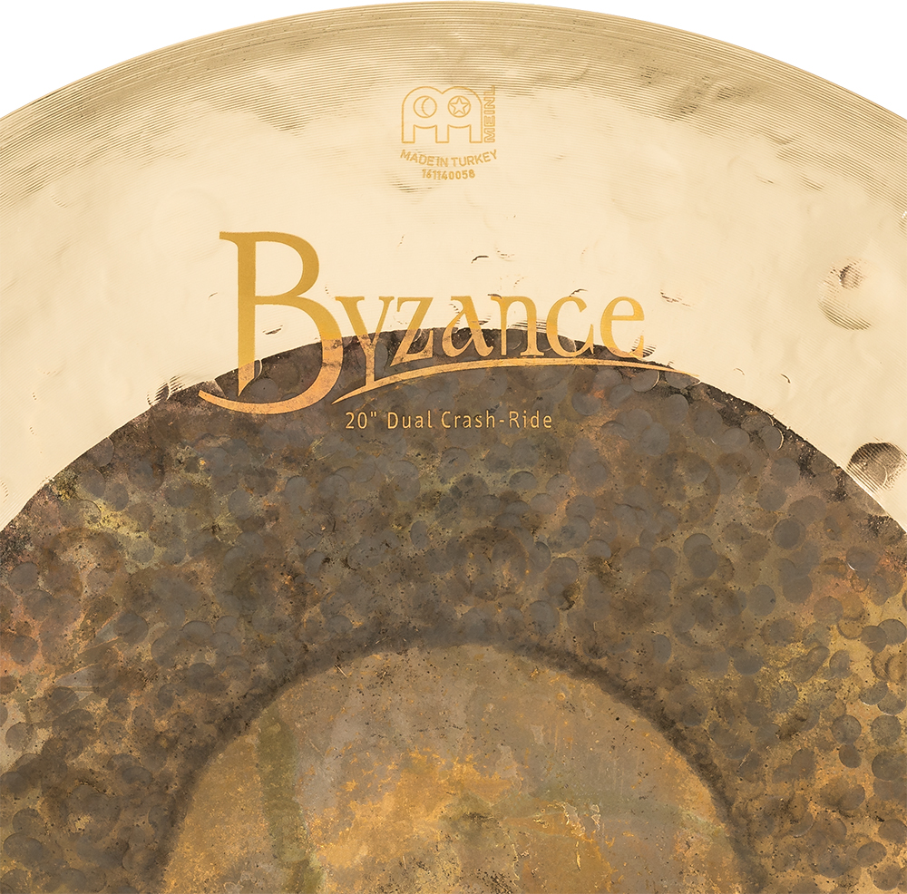 Meinl Byzance Extra Dry Dual Crash-Ride 20 to połączenie dwóch rodzajów wykończeń, Extra Dry czyli surowego z błyszczącym Brilliant. Takie zestawienie wykończenia sprawia, że talerz mimo swojej surowej i ciemnej natury, zyskuje nieco jasnego zabarwienia i staje się bardzo "trashy". Dual Crash-Ride to przede wszystkim doskonały duży crash o dużej ilości niskich składowych, który też daje bardzo spore możliwości do ridowania.