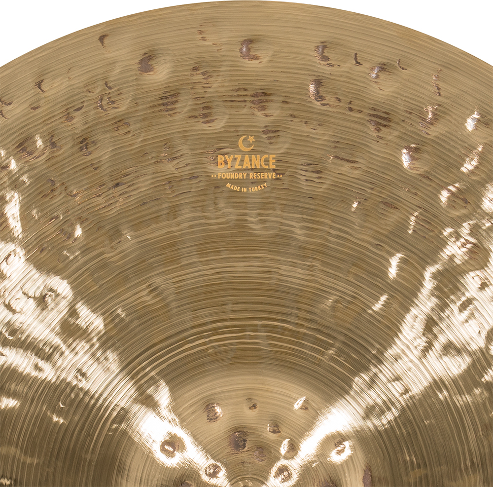 Każdy talerz z seriiByzance Foundry Reserve to małe dzieło sztuki. Już na pierwszy rzut oka widać, że ilość pracy poświęconej na wytworzenie tych talerzy musiała być naprawdę duża. Głębokie kucie na całej powierzchni oraz staranne wykończenie obu stron skutkuje czystym, suchym atakiem oraz pięknym rozmyciem o wyjątkowej szlachetnej barwie i bogactwie alikwotów.