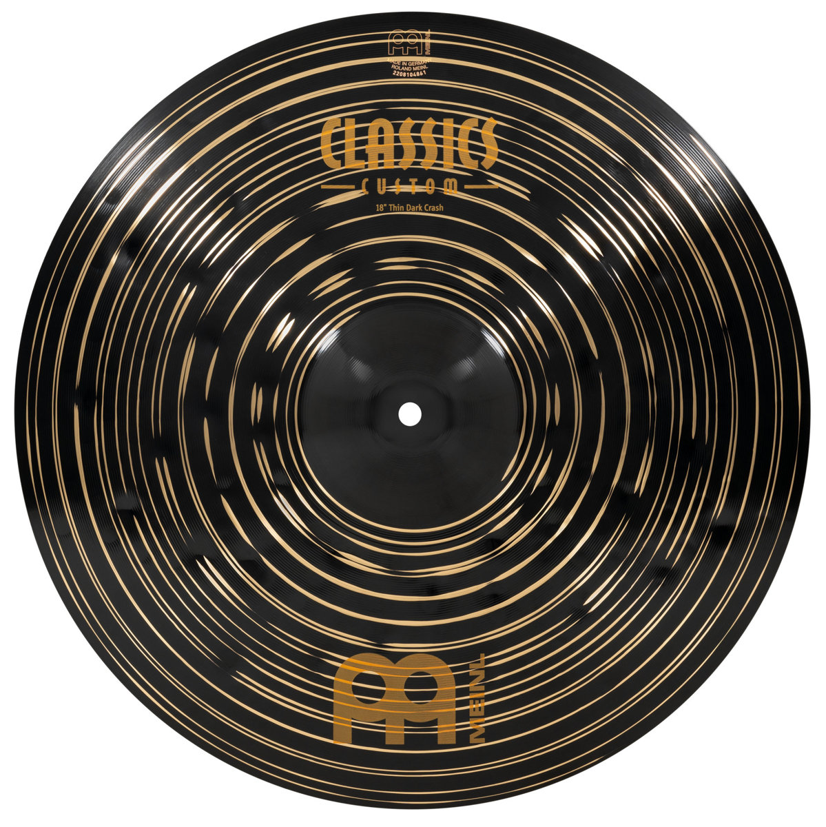 Meinl Classics Custom Dark Crash 18" Meinl Classics Custom to talerze o ciętym, selektywnym brzmieniu hihat’ów i rida, łączonym z wybuchowością crashy. Zaprojektowane dla ekspresyjnie grających bębniarzy, walczących o prym głośności z pozostałymi członkami zespołu. Dedykowane gatunkom takim jak Metal, Rock, Pop, czy Fusion.