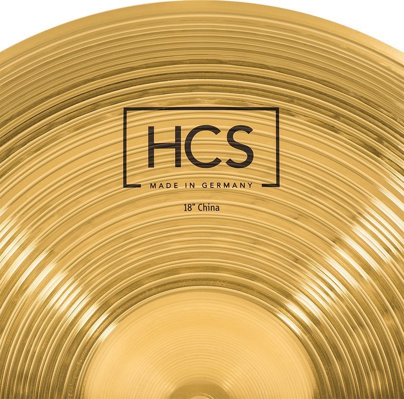 Talerze Meinl HCS to talerze wykonane z mosiądzu (brass), przeznaczone dla początkujących adeptów sztuki perkusyjnej. Cechują się skupionym brzmieniem i stosunkową dużą wytrzymałością, co szczególnie ważne na początkowym etapie nauki, gdy nie ma się jeszcze wyrobionej techniki.