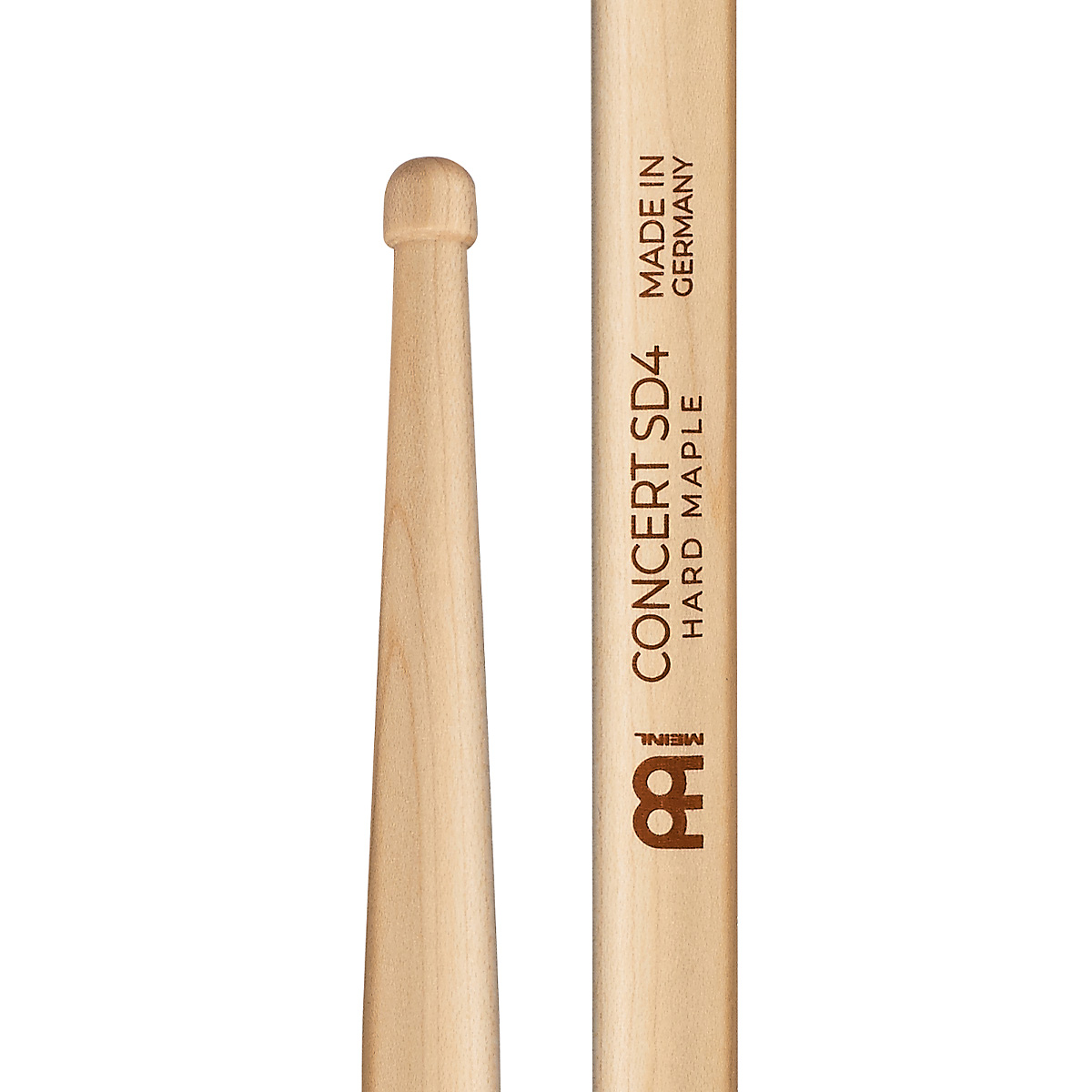 Meinl SD4 Concert Maple - najcieńsze pałki werblowe w ofercie Meinla. Nieco krótsze i sporo lżejsze od pozostałych pałek z serii Concert, wyróżniają się lepszą kontrolą w niższej dynamice gry. Główka w kształcie baryłki daje dobrą definicję brzmienia talerzy.