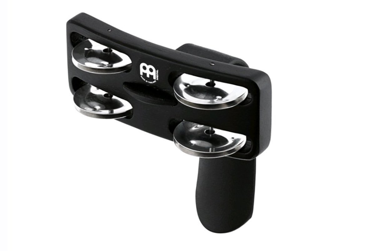 Tamburyn mocowany do stopy. Dwa rzędy stalowych talerzyków. Korpus z tworzywa.
