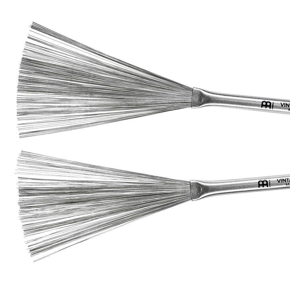 Meinl Vintage - zawodowe, chowane miotełki z aluminiową rączką. Rękojeść pozbawiona gumowej osnowy nadaje wyglądu retro, a także nieco inne wyważenie. Chowane za pomocą prętów pozwalają dostosować rozwarcie pręcików, a tym samym dostosować brzmienie. Wyśmienite miotełki do jazzu i nie tylko w stylu vintage.