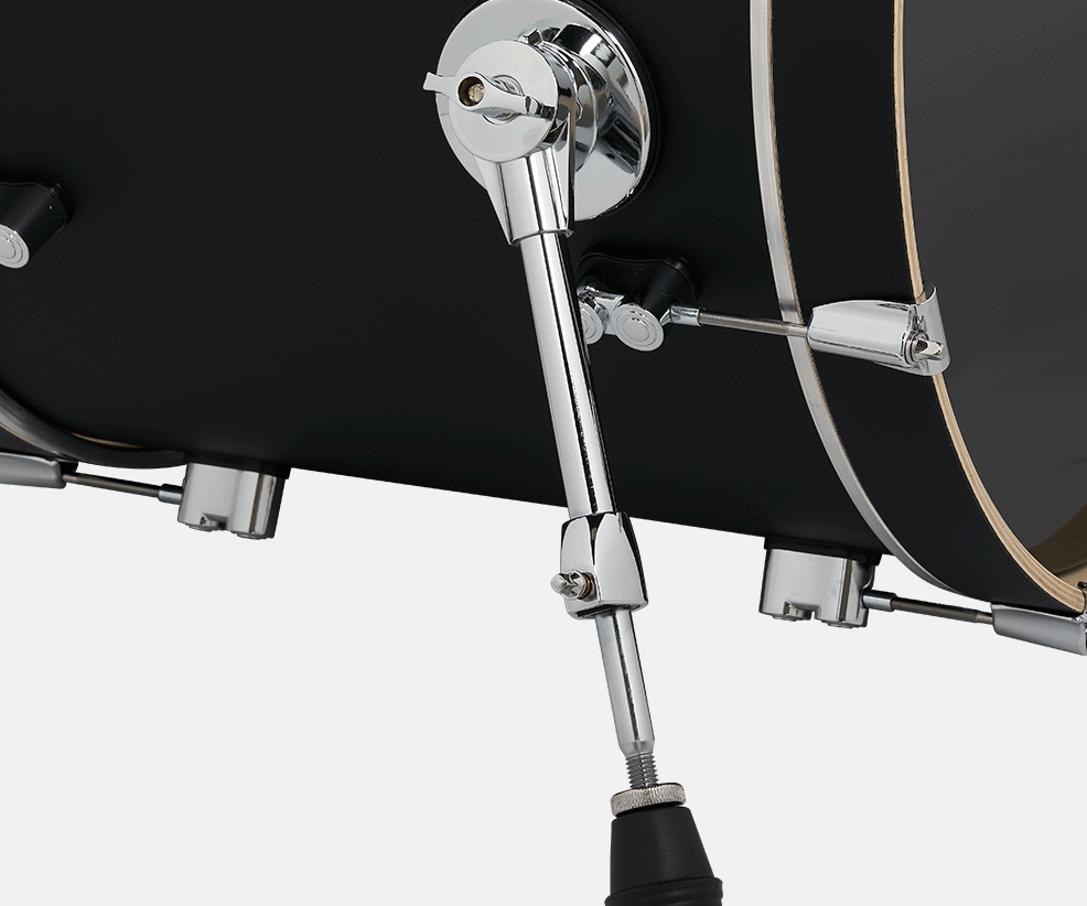 Zawieszenie tomów to oczywiście niezależny system STM, zaczerpnięty wprost z linii DW Collectors. Gwarantuje on pełny, niczym nie ograniczony rezonans pozwalający tomom wybrzmieć pełnym, otwartym brzmieniem. Floor tom wyposażony w mocne stalowe nogi, w charakterystycznym dla DW kształcie. Odlewane claw hooki bębna basowego w standardzie oraz jego stabilne nogi dopełniają całości. Wszystko na nowo zaprojektowane i wykonane z precyzją i dbałością o szczegóły, charakterystyczną dla Drum Workshop. Podkreśla to jeszcze dosadniej nowe logo PDP i tabliczki na bębnach przypominające te z wysokich serii DW.