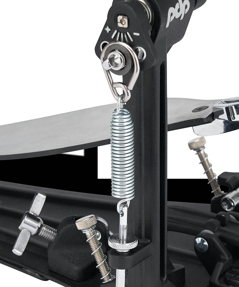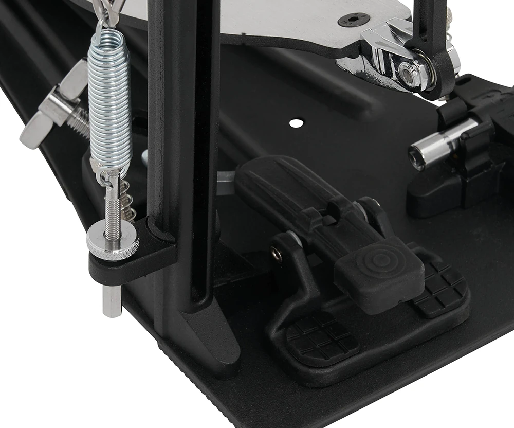 - Regulacje – niezależny kąt bijaka i napięcie sprężyny na obu pedałach, łatwe dopasowanie odbicia.