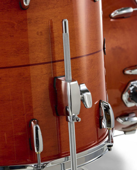Maple Complete zachowuje piękny osprzęt klasycznych mastersów, z jednym wyjątkiem - w nowym modelu wprowadzono gięte obręcze 2,3mm które czynią brzmienie bardziej otwartym, a sustain dłuższym, a cały zestaw bardziej uniwersalnym brzmieniowo i podatnym na subtelniejsze uderzenia, nie tracąc przy tym stabilności stroju.