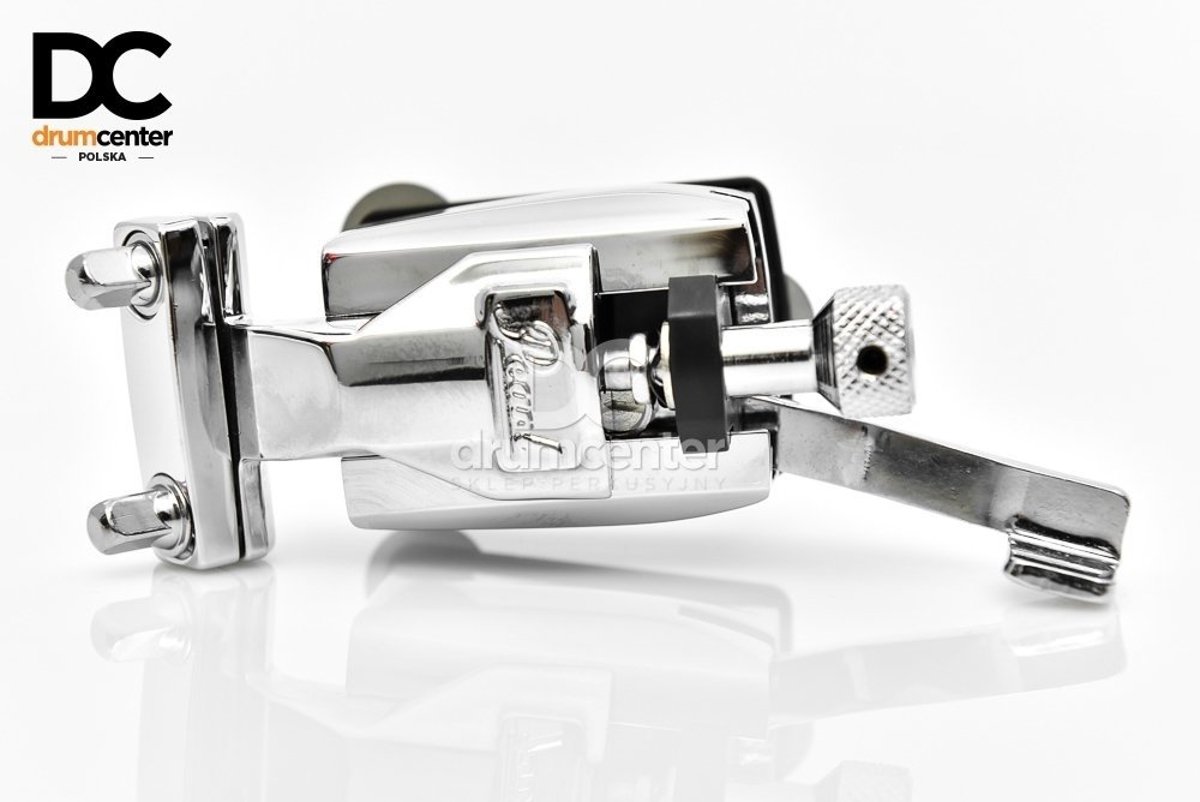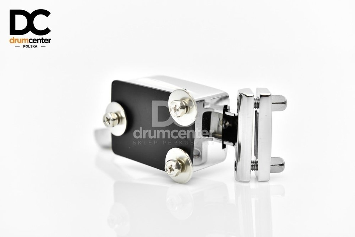 Profesjonalna maszynka Pearla. Zestaw zawiera napinacz. Maszynka mocowana do korpusu za pomocą trzech śrub w układzie trójkątnym. Dźwignia maszynki porusza się w płaszczyźnie prostopadłej do korpusu werbla.