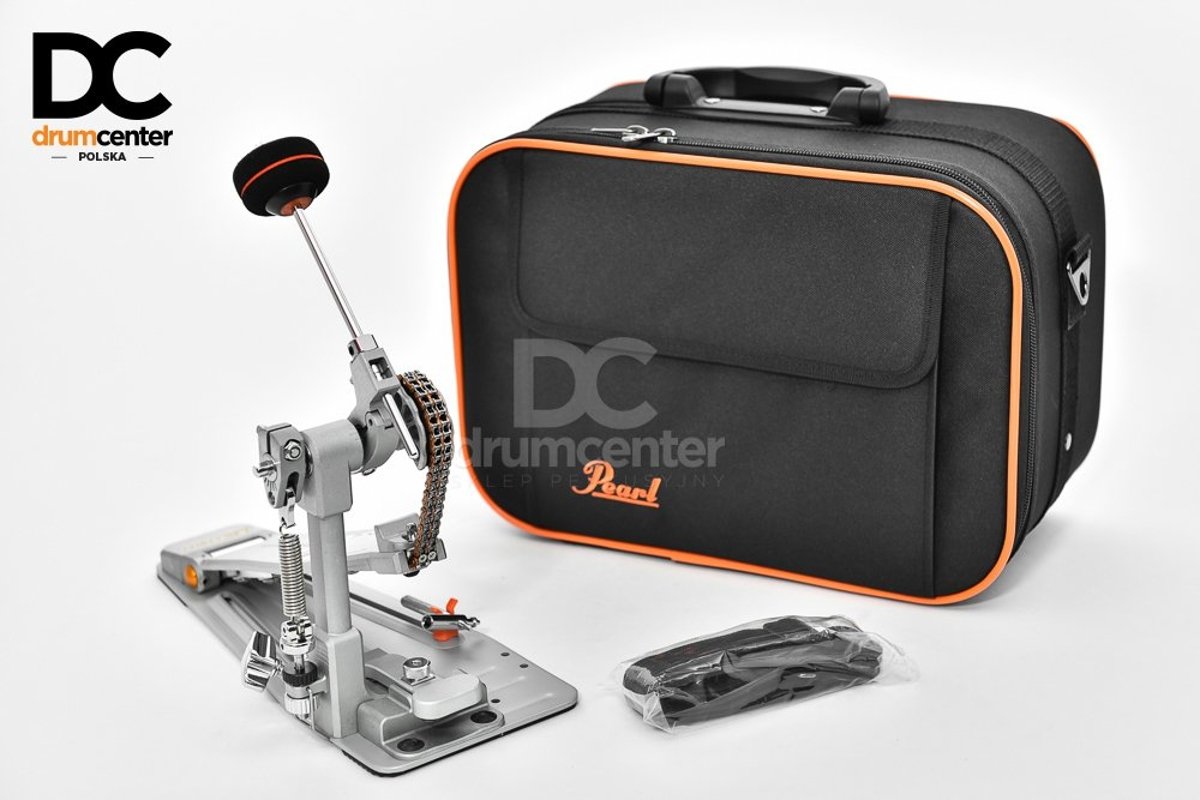 Do stopy Pearl Demon Drive P3000C dodawany jest usztywniany pokrowiec z charakterystyczną pomarańczową lamówką, który jest w stanie znieść wiele upadków i niedogodności związanych z transportem chroniąc instrument.