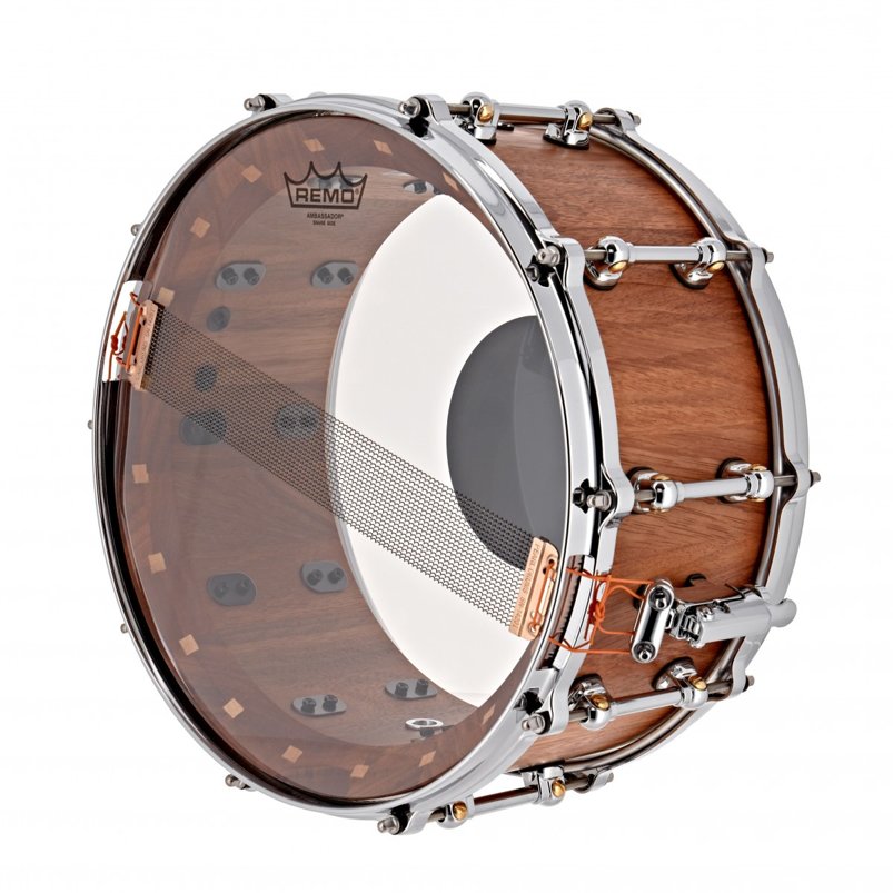 Pearl StaveCraft Makha 14x6,5 - werbel klepkowy wykonany z twardego, egzotycznego drewna Makha. Bardzo rzadkie, drogie drewno o wyjątkowych właściwościach brzmieniowych, które zawdzięcza swej gęstości i sporej wadze. Korpus o grubości 25 mm został wzmocniony poprzez zastosowanie dębowych "piór" (Thai Oak) łączących wszystkie klepki w jeden solidny korpus. Dado-Loc - bo tak nazwano tą technologię - poprawia całkowitą wytrzymałość korpusu o 50%.
