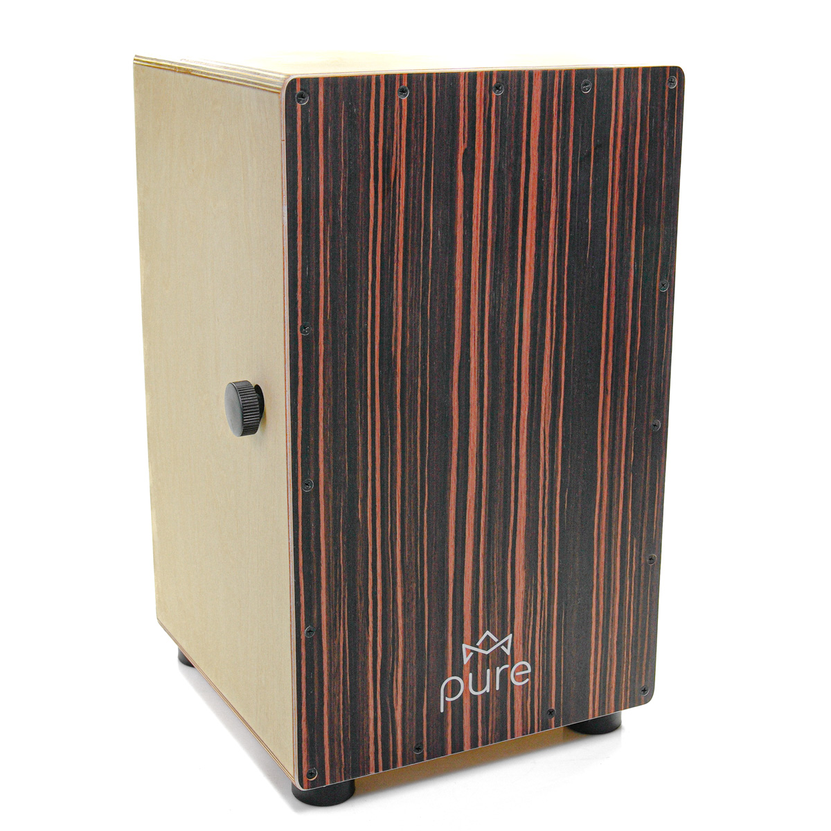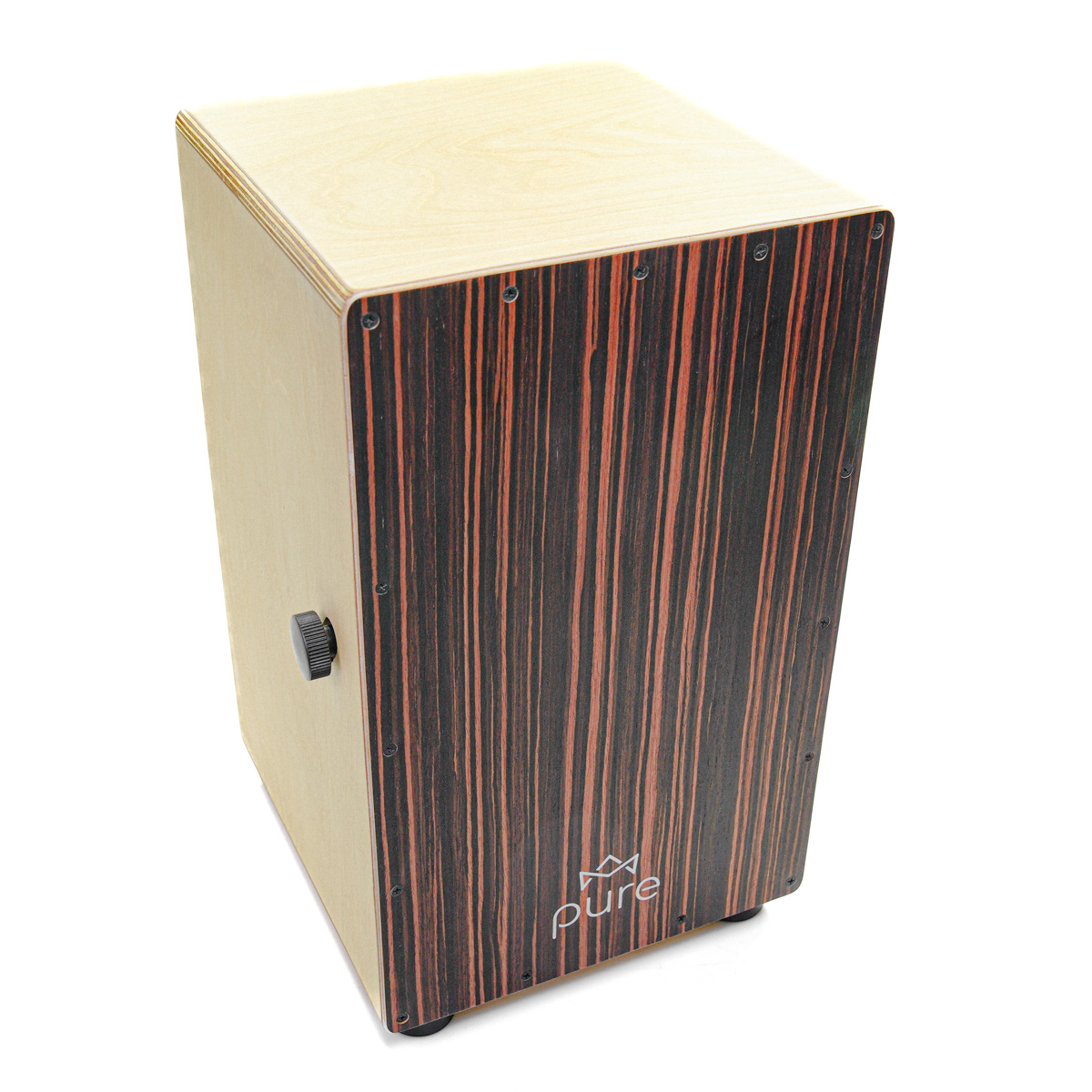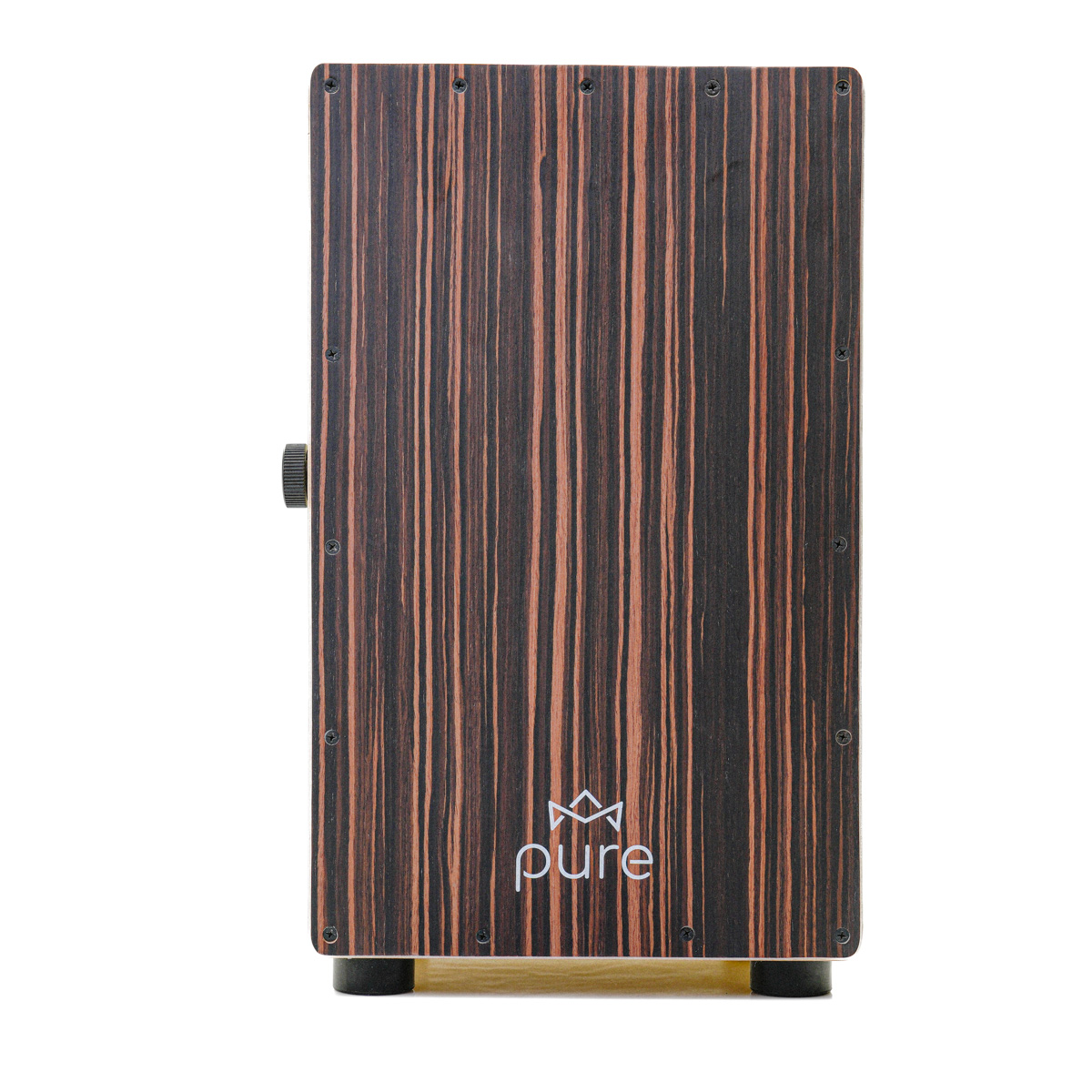 Cajon marki PURE z serii Pro Exotic to pełnowymiarowy instrument, którego korpus wykonany jest z drewna brzozowego. Pasuje on do wszystkich popularnych pokrowców na cajona. Front cajona wykonany w wersji Exotic HT Ebony. Bardzo ważą cechą cajonów z tej serii jest możliwość regulacji siły docisku sprężyn do płyty czołowwej lub ich całkowite wyłączenie. Mechanizm opiera się na przesuwanym po księżycowej prowadnicy pokrętle zaciskowym co uniemożliwia samoistne poluzowanie się sprężyn.