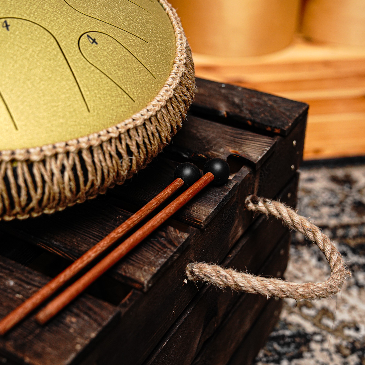 Doskonały do relaksu, medytacji, jogi, muzykoterapii oraz zajęć grupowych. Jest także łatwy do opanowania przez dzieci. Nasz Tongue Drum pokryty jest wytrzymałą warstwą ochronną. Posiada nóżki od spodu oraz wyjmowalną zaślepkę basową. Po jej usunięciu, instrument staje się jeszcze dźwięczniejszy. Połączenie zakryte jest przez gęstą plecionkę, nadającą instrumentowi niesamowitego charakteru.