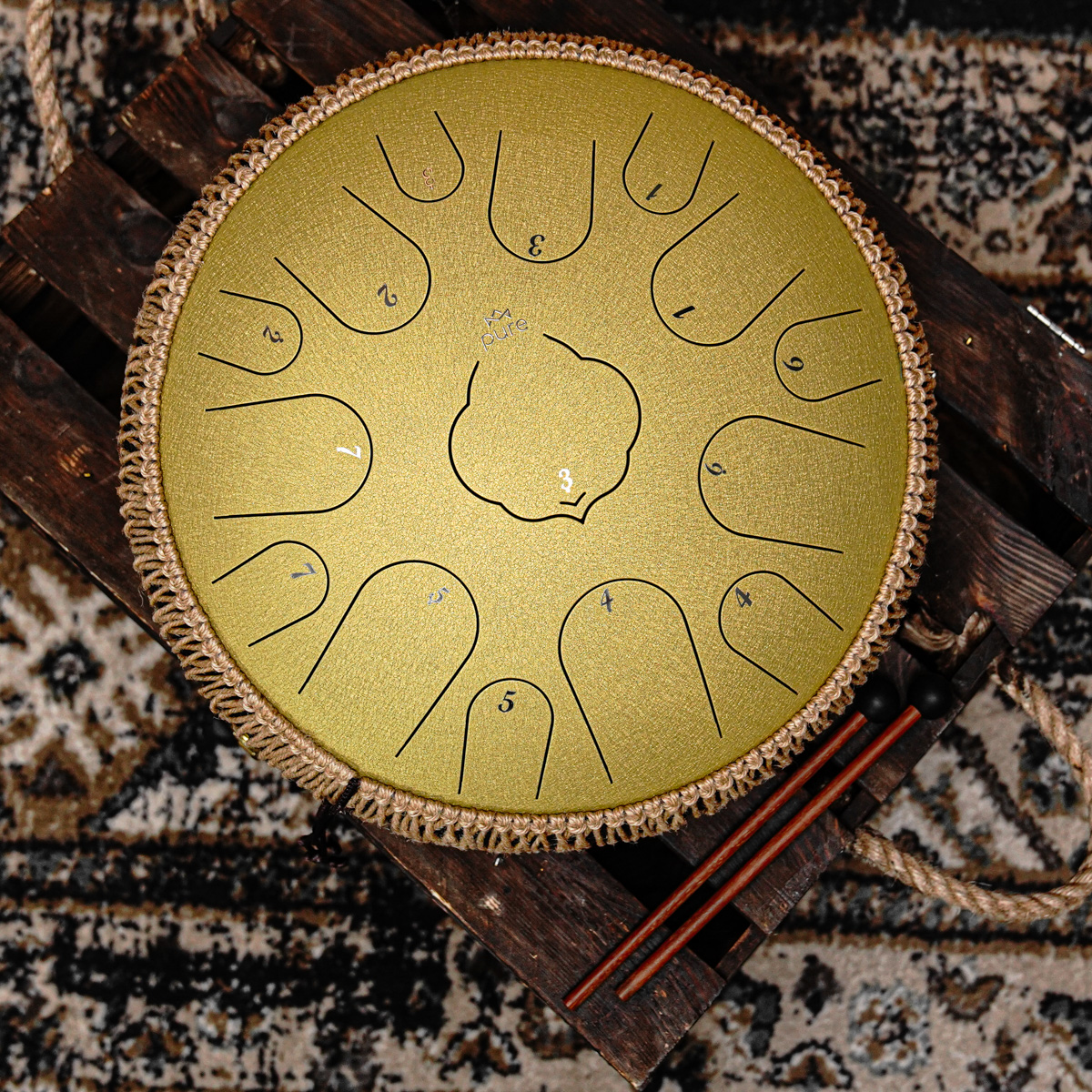 Pure Tongue Drum Lotus to wysokiej jakości instrument o eterycznym brzmieniu, który zaczarowuje, wciąga w magiczny świat relaksu i odprężenia. Języki dźwiękowe wycięte są precyzyjnie przez laser. Dzięki precyzyjnemu wykonaniu dźwięk jest wyjątkowo czysty i łatwy w kontroli. Cały instrument nastrojony jest do skali D-Dur (D Major). Skala ta umożliwia łatwą grę, tworzenie melodii, improwizację, a to wszystko możliwe jest bez wcześniejszego doświadczenia z innym instrumentem. Po prostu. Siadaj i graj!