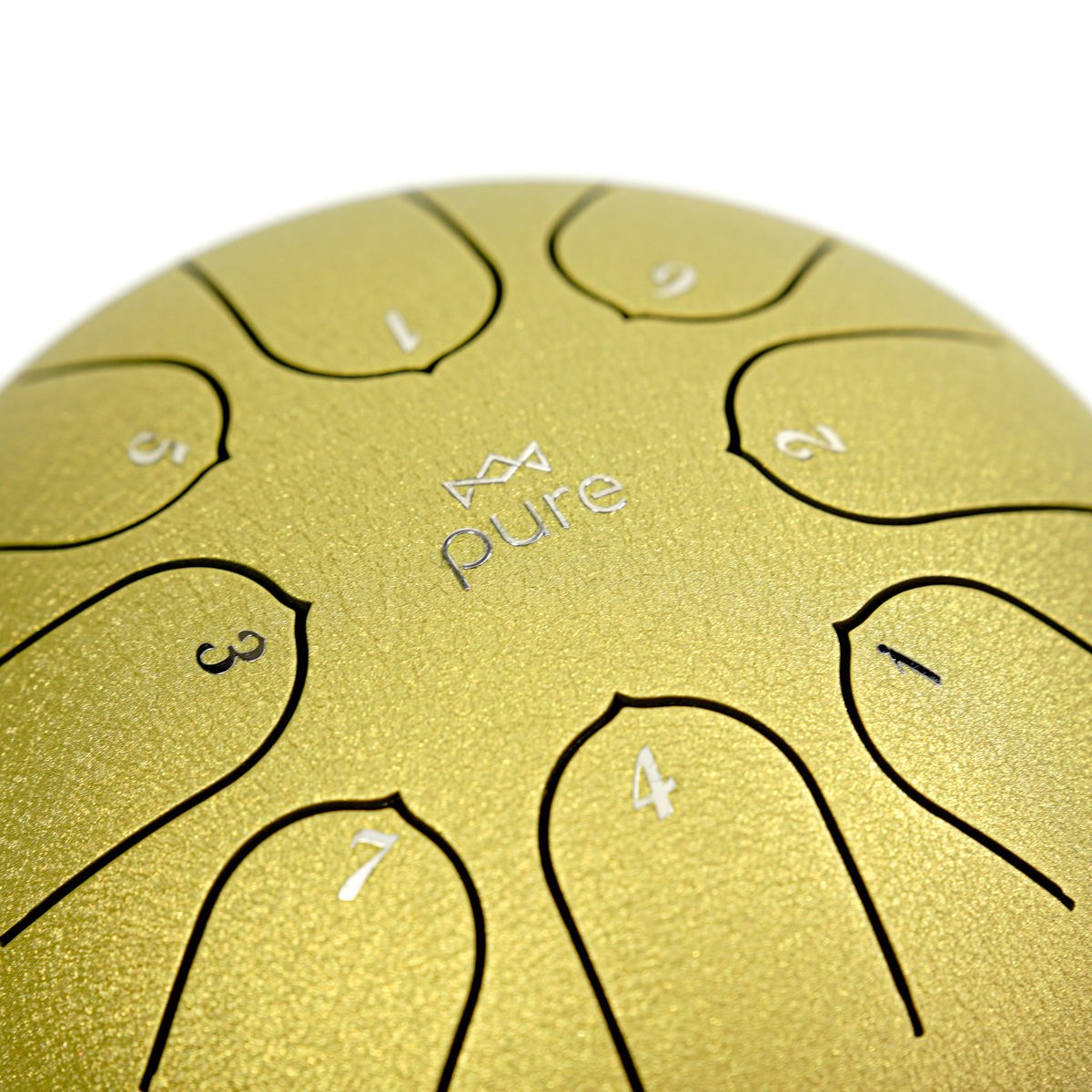 Pure Tongue Drum Pro Mini to bęben językowy o średnicy ok. 15 cm. Posiada 8 tonów. Strojony laserowo do tonacji C-Dur. Gra na tym instrumencie zabiera w magiczną podróż do odprężenia i relaksu. Gra jest tak wciągająca, że czas biegnie inaczej. Skala do której nastrojony jest instrument umożliwia łatwą grę, tworzenie melodii, improwizację, a to wszystko bez konieczności posiadania doświadczenia z innymi instrumentami. Po prostu, siadaj i graj!