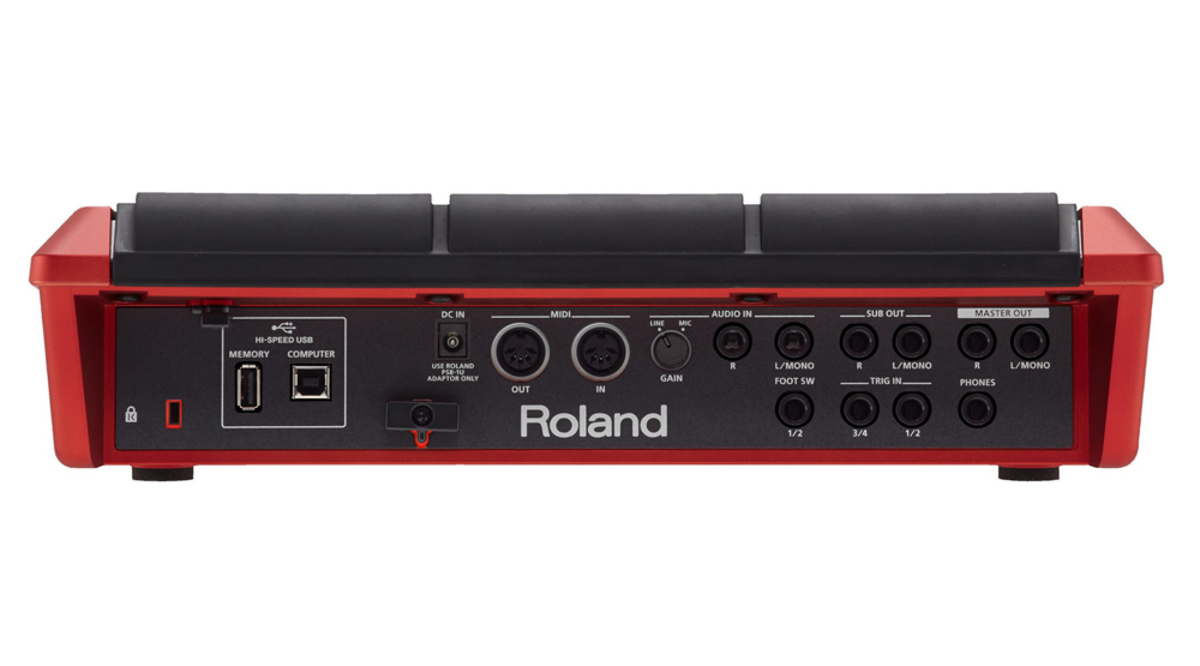 Sampling Pad Rolanda wyposażony jest w cały komplet "wyjść" i "wejść" służących do komunikacji z zewnętrznymi urządzeniami: