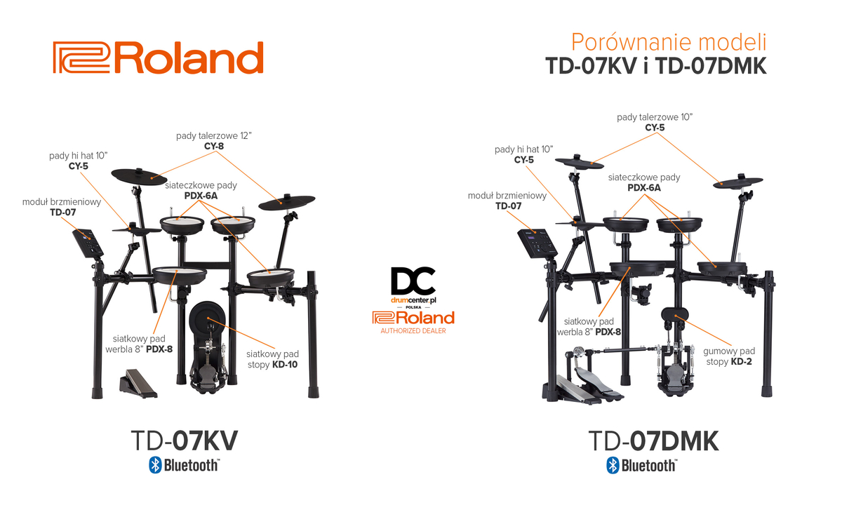 Perkusja elektroniczna Roland TD-07KV to najnowszy zestaw perkusji elektronicznej tego producenta oparty na naciągach siateczkowych i rozbudowanym module TD-07. Przeznaczony zarówno dla amatorów jak i profesjonalnych muzyków, pragnących ćwiczyć bez wychodzenia do sali prób.