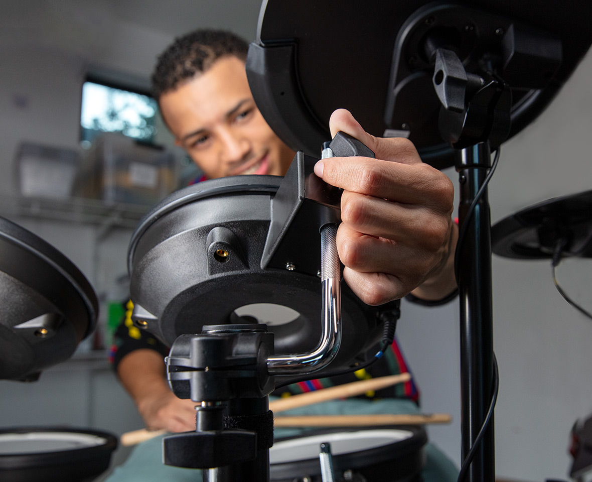 Dzięki zaawansowanej technologii V-Drums akustyczne próbki brzmią świetnie i bardzo realistycznie. Dostępna jest również szeroka gama elektronicznych instrumentów perkusyjnych, a także możliwość dostosowania każdego brzmienia do własnych upodobań. Dzięki edycji wielu parametrów takich jak wysokość dźwięku, długość wybrzmienia czy stopień tłumienia mamy realny wpływ na brzmienie całego instrumentu i możliwość dostosowania do swoich potrzeb.