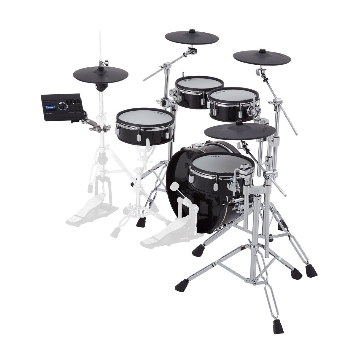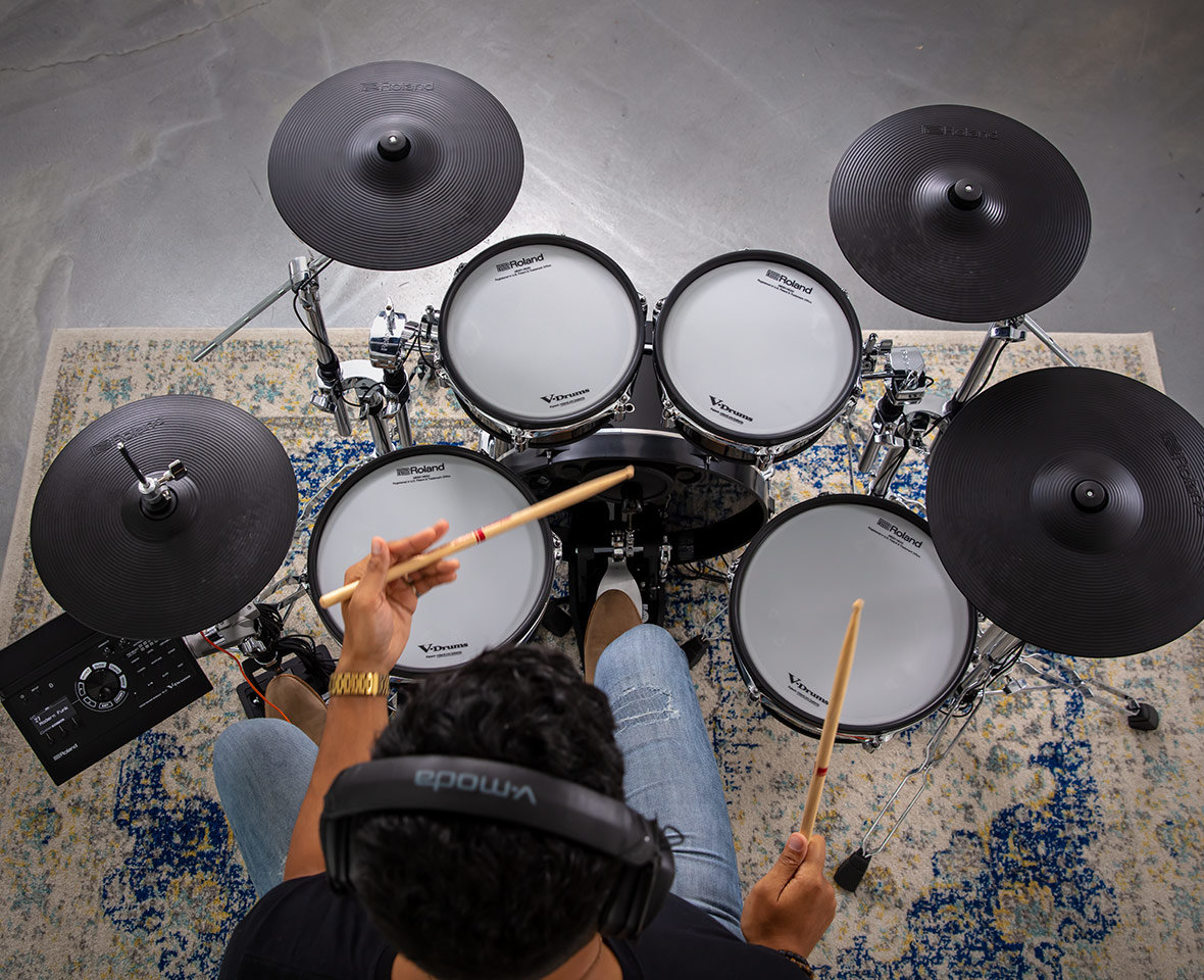 Perkusje akustyczne zwykle oferują większy rozmiar i wrażenia wizualne, dotykowe oraz ustawienia fizyczne w porównaniu do elektronicznych padów perkusyjnych. Dlatego VAD307 została wyposażona w większe elementy, takie jak 12-calowy werbel i floor tom, dwa 10-calowe tomy oraz 18-calową centralę, aby zapewnić naturalnie szeroki zakres dla maksymalnego komfortu podczas grania. Dodatkowo, drewniane korpusy pozytywnie wpływają na autentyczne wrażenia akustyczne podczas uderzania w pałki i bijak. Wszystko to sprawia, że gra na VAD307 to nie tylko satysfakcjonujące doświadczenie dla uszu, ale również dla zmysłów i fizycznego kontaktu z instrumentem.